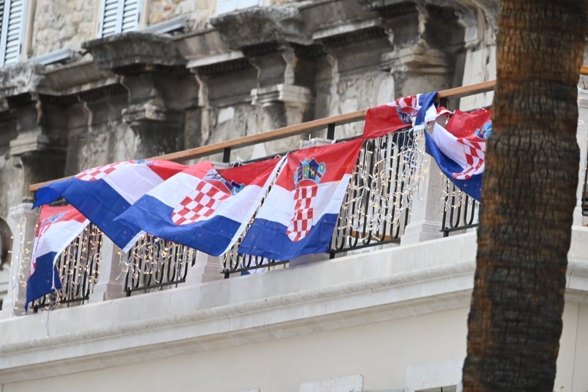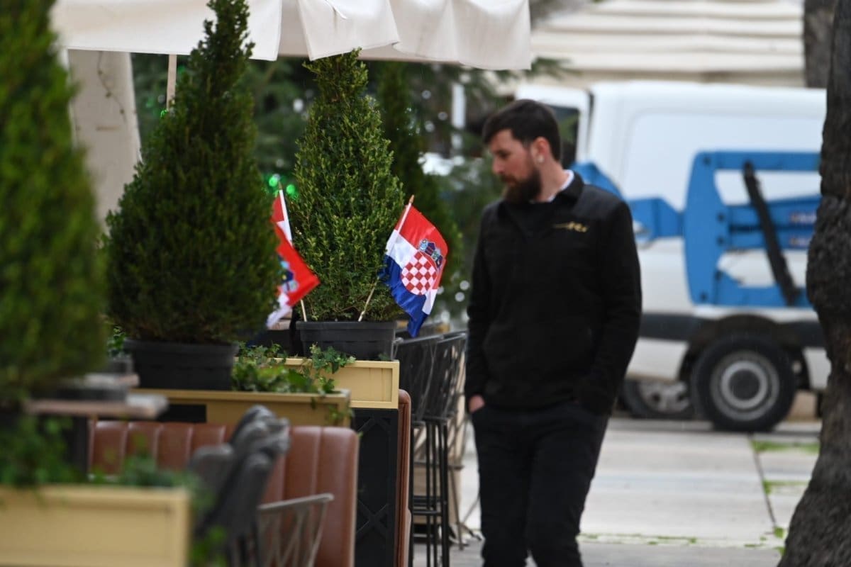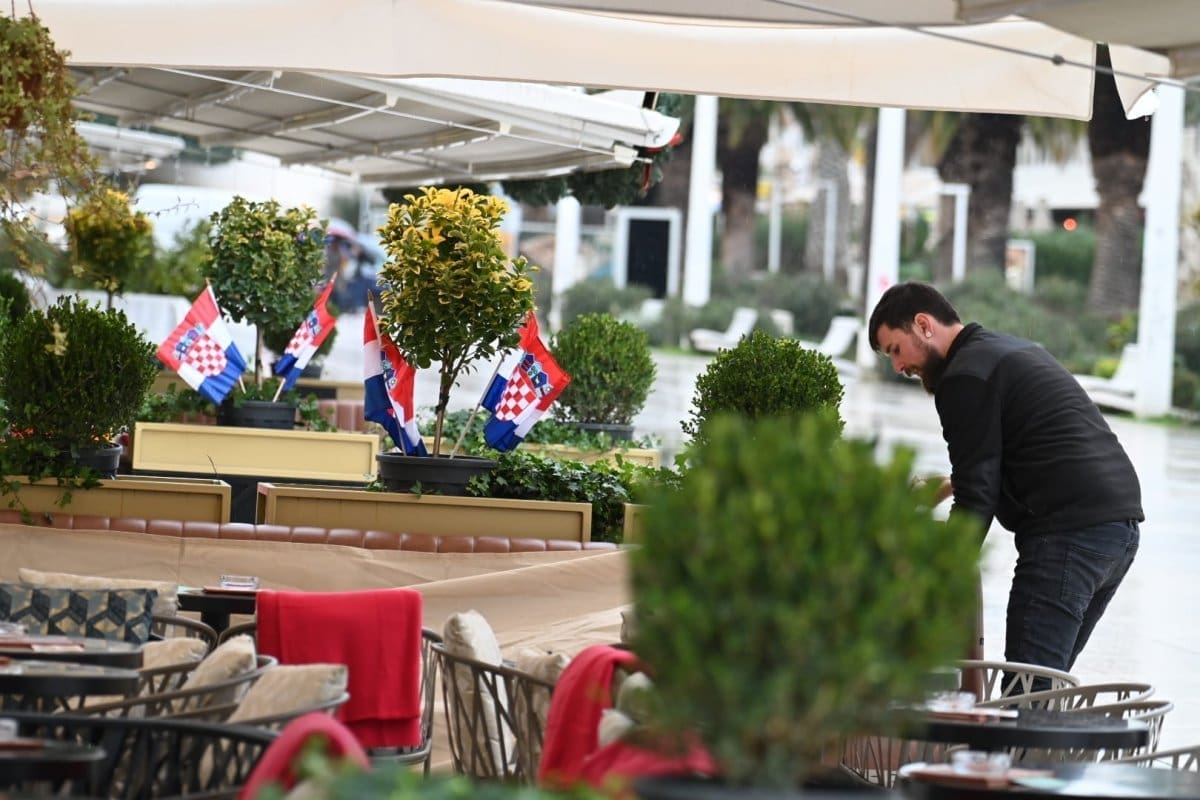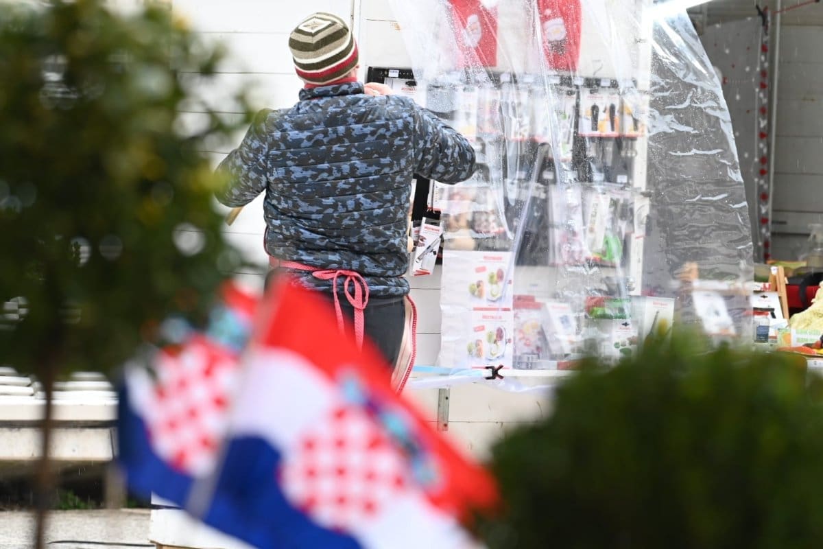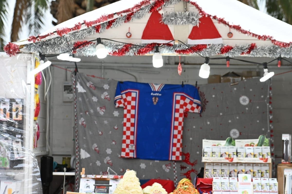 Kiša od ranih poslijepodnevnih sati pada u Splitu što je opustjelo splitske ulice, terase, štekate i kafiće. I splitski pazar je pust, ističu se samo štandovi u bojama hrvatske zastave. Kockice na majicama su postale jako prodavane zadnjih dana, a među najprodavanijim dresovima su Livajin, Modrićev i Gvardiolin dres.