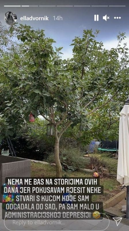 "Nema me baš na storyjima ovih dana jer pokušavam riješiti neke stvari s kućom, koje sam odgađala dosad pa sam malo u administracijskoj depresiji", napisala je.