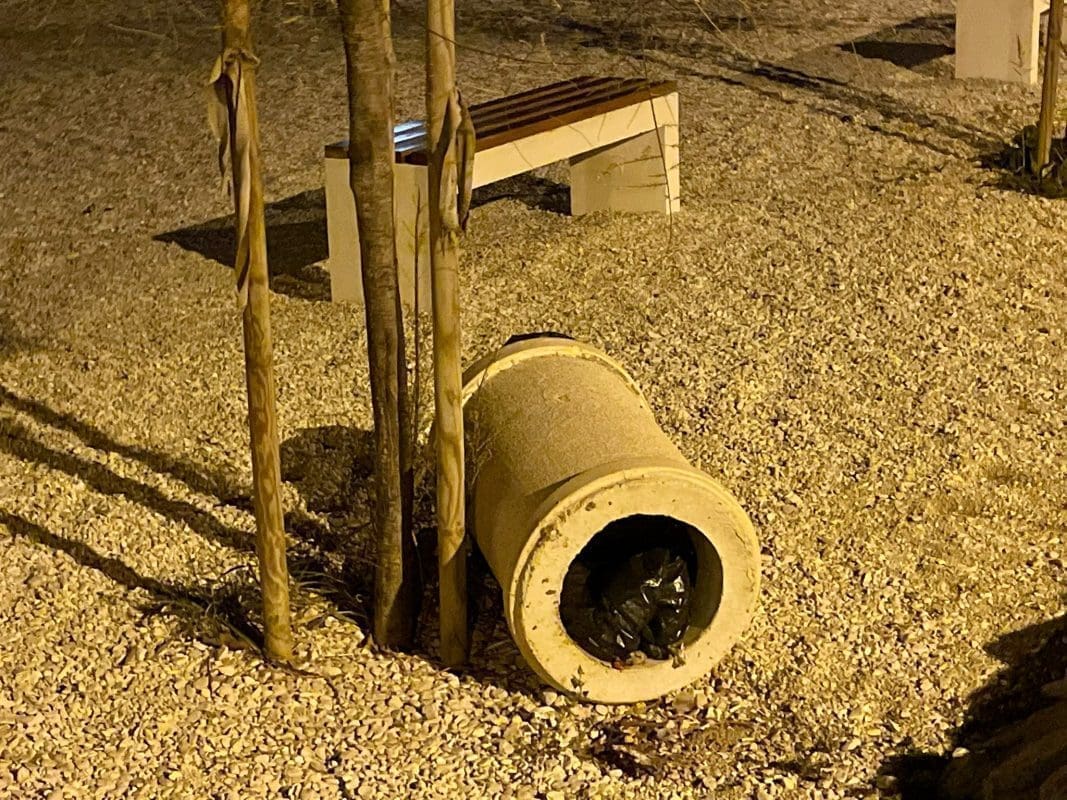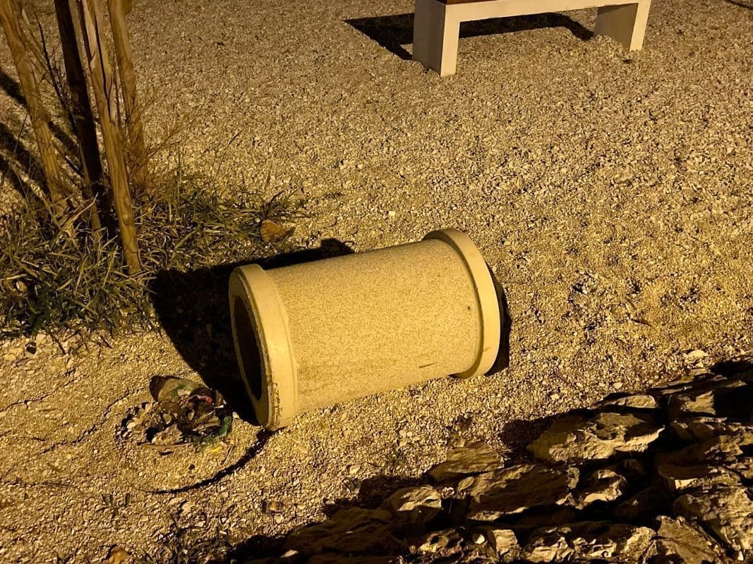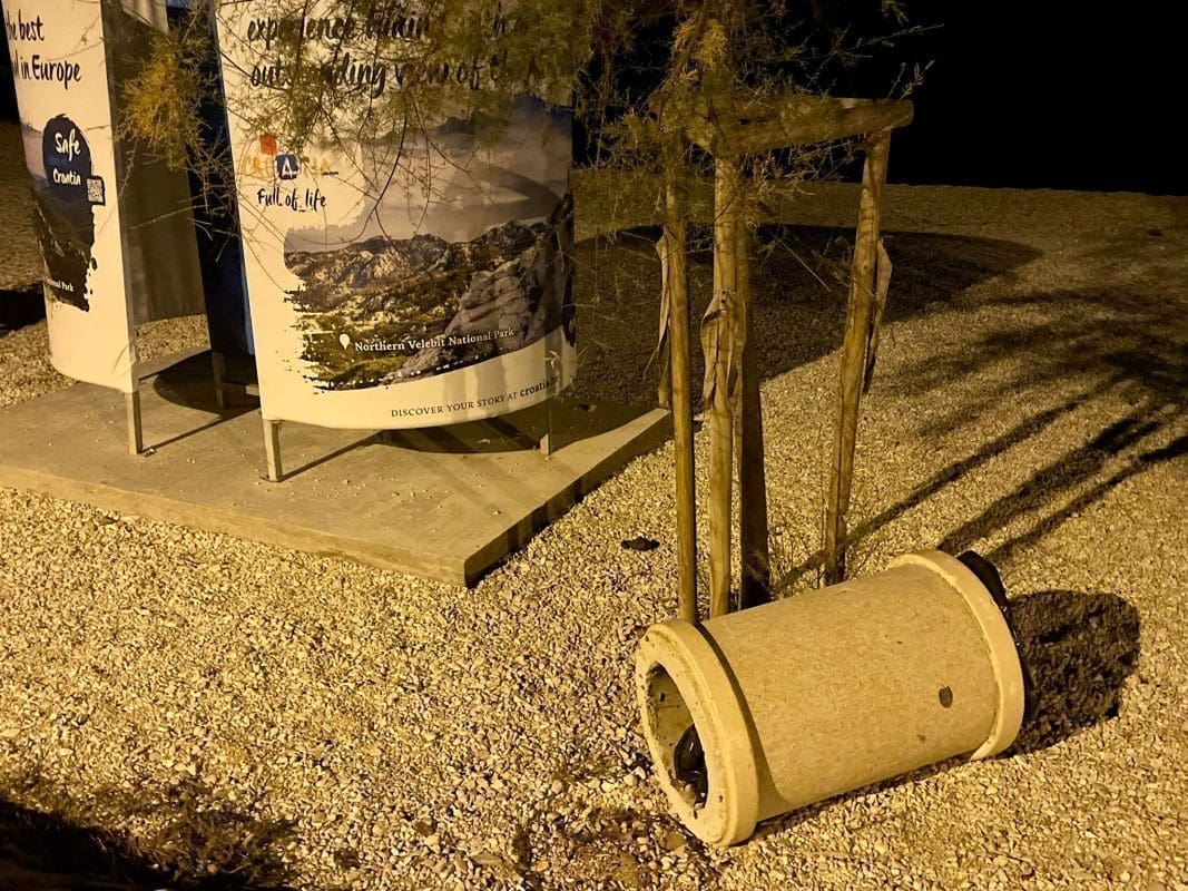 Dobar dio kanti na šetnici na Trsteniku je - uništen. Srušene su na pod, smeće je ispalo van, pa nekako nema smisla nešto i pokušati odložiti u njih.