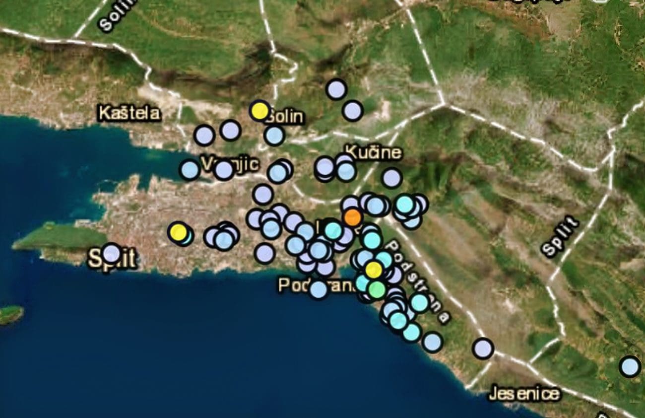 Nadodajmo na kraju da je EMSC objavio gdje su ljudi najviše osjetili potres iz Splita, odnosno u kojem dijelu grada su prijavili podrhtavanje. Karta ispod to najbolje dočarava. Naime, ovaj slabiji potres svi su osjetili na istoku Splita, dok oni koji žive na zapadu grada nisu osjetili apsolutno ništa.