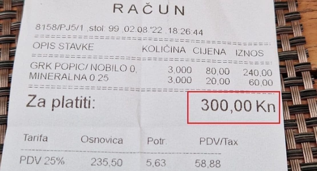 Iako smo već naviknuli da ugostitelji posežu za poskupljenjima tijekom turističke sezone, ipak neke 'cifre' pojedine goste dovode do 'ludila'.