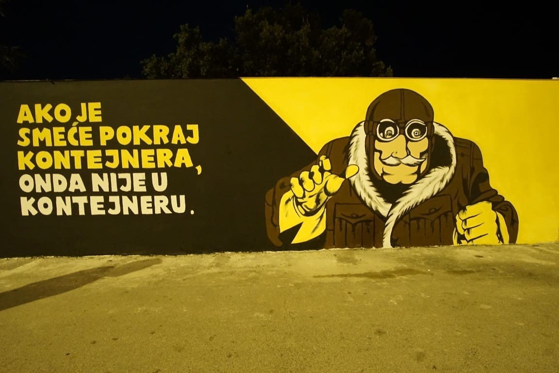 Naime, oni su zid koji se nalazi uz kontejnere naslikali mural s Grunfom iz Alan Forda koji se obraća na prepoznatljiv način. "Ako je smeće pokraj kontejnera, onda nije u kontejneru" - poručuje Grunf.