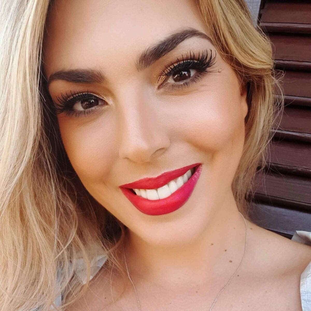 Da bi postigli glamurozan make up uvijek treba obratiti pozornost na odabir pudera. Ovog puta smo radili vodootporni make up koji je trebao izdržati kupanje u moru, stajanje na suncu na 35 stupnjeva. Trebala mi je jača podloga koju sam itekako dobro fiksirala s tekućim fiksatorima. Korektor također vodootporni da se ne bi razlio po licu. Za oči sam koristila kremaste nijanse u zlaćanim tonovima. Takve boje savršeno pristaju Leinim smeđim čokoladnim očima. Koristila sam u tušu opet vodootporne crne boje. Upotrijebila sam i crnu olovku na gornjem kapku da bi dobila dubinu očiju. Umjetne trepavice su bile obavezne na retro loook.