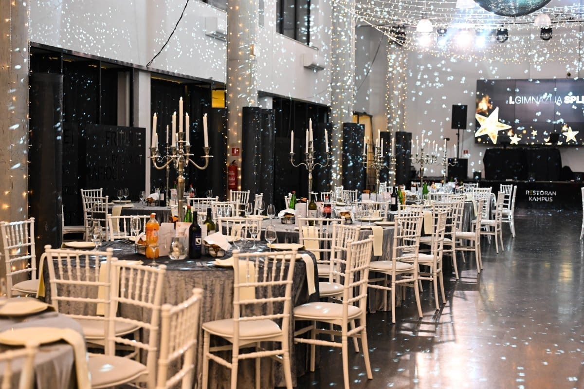 destinacija splitskih maturalnih večeri. Besprijekorna organizacija, moderno uređenje i raskošna dekoracija s preko 2000 lampica, najvećom disco-kuglom u Hrvatskoj i bogatom rasvjetom, oduševili su maturante u