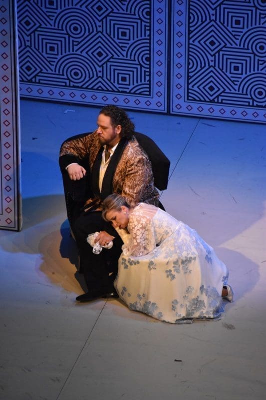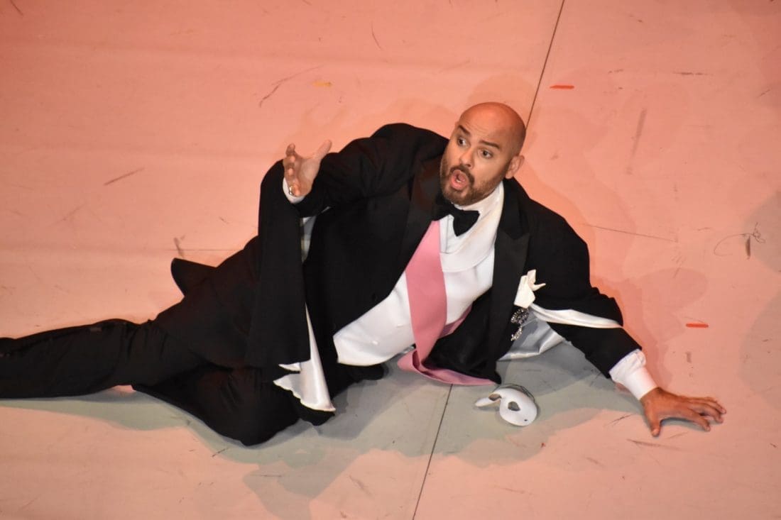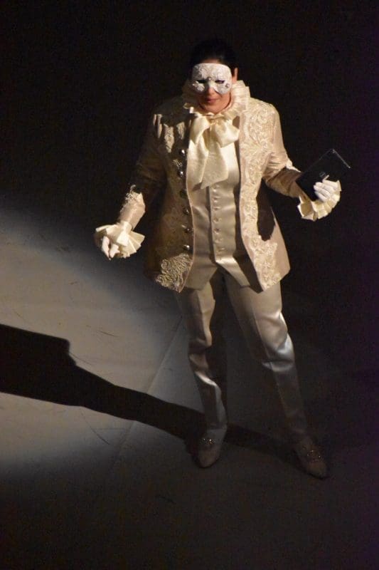 Treći čin mora raspetljati pitanje zabranjene ljubavi i povrede časti. Opet problem – povrede časti de facto nije bilo, što neće spriječiti Renata da dobrano isprepada publiku svojim žučljivim napadom na vlastita prijatelja i gospodara. Ples pod maskama idealna je prilika za to. Savršeno osmišljene kulise (platno s prikazom splitskog kazališta) i prelijepi, raskošni kostimi (Mladen Radovniković) uvode nas u bal koji je igra mačke i miša (opet hamletovski motiv), potjera Renata za Riccardom, Riccarda za Amelijom, potreba peripetije libreta za razrješenjem i istinom. I opet, kako već biva kad u ljubavi nisi iskren na vrijeme, bizarni trokut kulminira nepotrebnim krvavim sukobom, a katarza se pokušava postići dramatičnim „labuđim pjevom“ grofa Riccarda koji još stigne povući pitanje oprosta i kozmičke pravde. Dodajte još sjajan efekt modernizacije i spektakularizacije posljednjih trenutaka umirućega (sluga Oscar u izvrsnoj izvedbi Branke Pleština Stanić) kroz snimanje videa neočekivana krvoprolića – e to je onaj posljednji šamar intimnoj ljubavnoj priči od koje je na kraju uvijek važnija okolina – reakcija, lajk, klik.