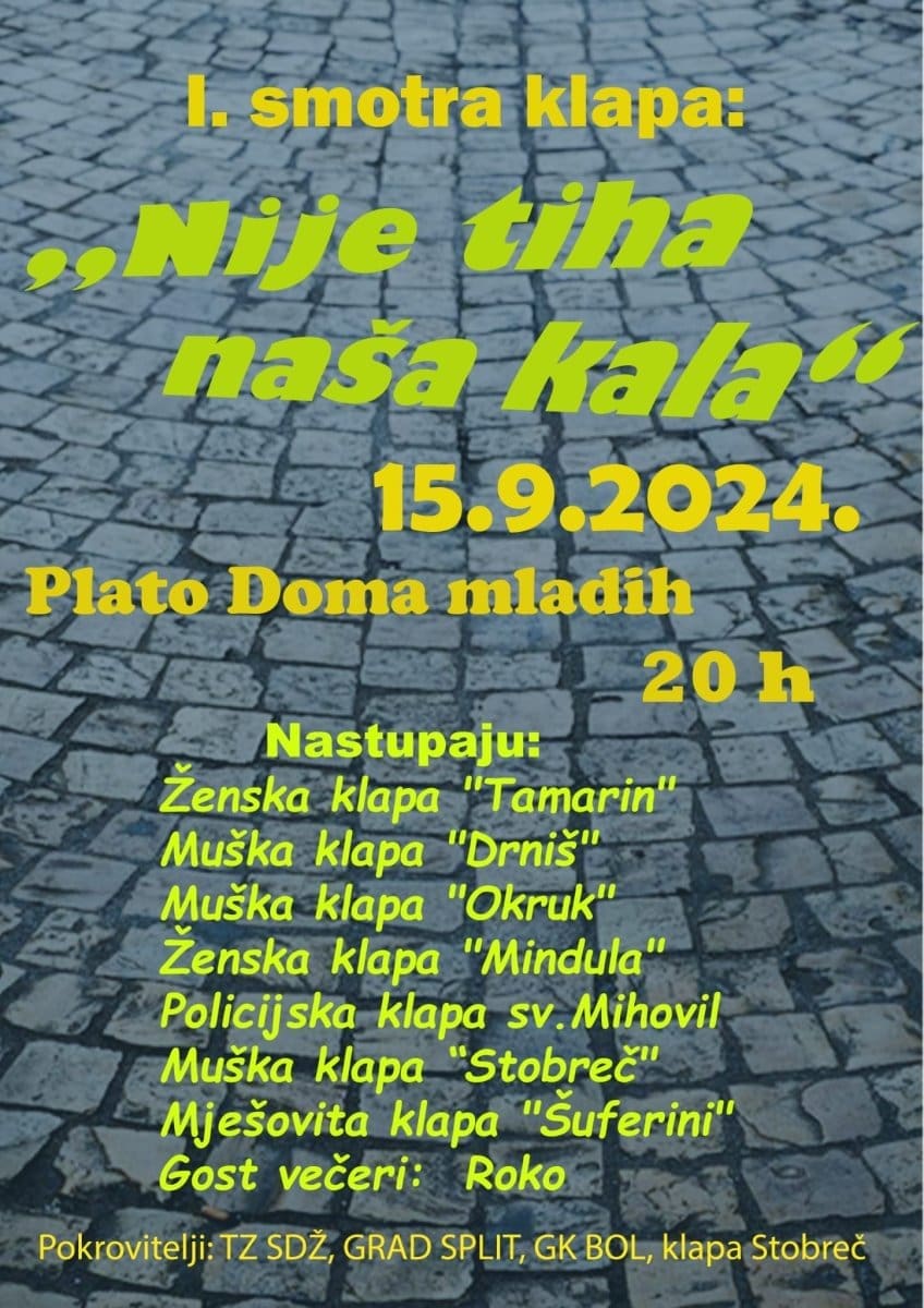 Vijeće GK Bol, kaže predsjednica kotara Snježana Šago, zahvaljuje Turističkoj zajednici Splitsko - dalmatinske županije i Gradu Splitu na sudjelovanju u organizaciji koncerta i poziva građane i građanke da se pridruže toj prvoj smotri klapa.
