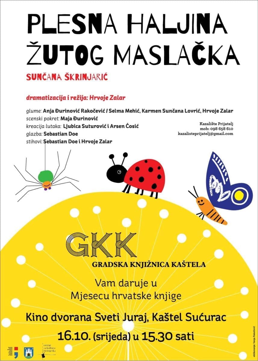 Povodom Mjeseca hrvatske knjige Gradska knjižnica Kaštela daruje svim polaznicima kaštelanskih dječjih vrtića, prvašićima i učenicima nižih razreda osnovne škole, kao i svim mlađim članovima GKK predstavu "Plesna haljina žutog maslačka". Predstavu će Kazalište Prijatelj odigrati u srijedu, 16.listopada u 15.30 sati u Kino dvorani svetog Jurja u Kaštel Sućurcu.