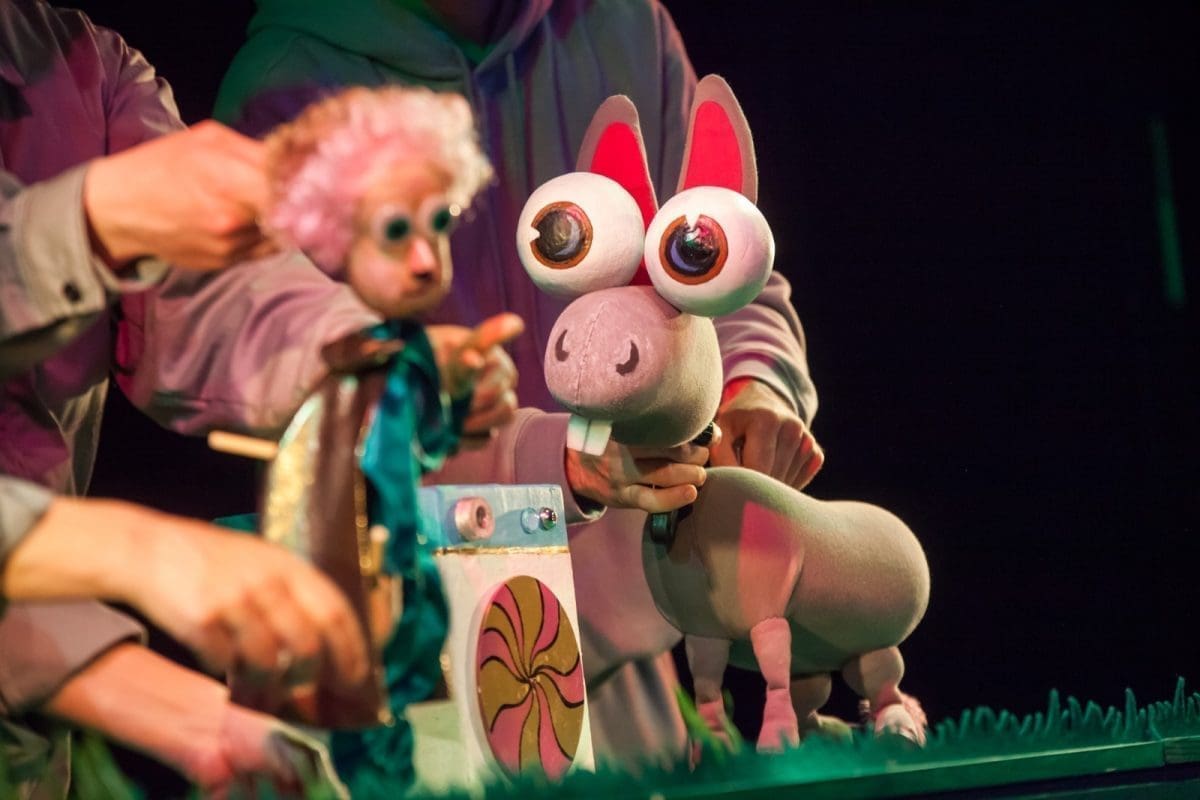 Predstava „Magarac i čarobnjak“ tematizira sraz dvaju oprečnih svjetova i vrlo brzo nadilazi tipičan početak lutkarske predstave. Životinje koje se bezbrižno odmaraju ulaze u konflikt s magarcem koji podcjenjuje njihov način života i svisoka govori o tome kako bi bilo biti čovjek. U kombinaciji s neobičnim čarobnjakom koji dolijeće na veš-mašini magarac vrlo brzo shvati kako se, nažalost, najlakše prokrči put u ljudski svijet – ucjenjivanjem. Više iznudivši nego izmolivši da postane čovjek, magarac olako shvaća upozorenje da će čarolija trajati dok ljudi ne shvate da je među njima magarac.
