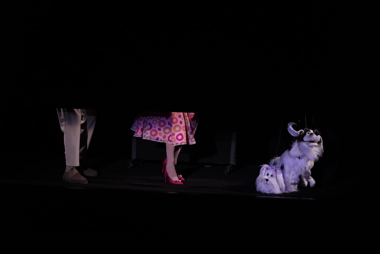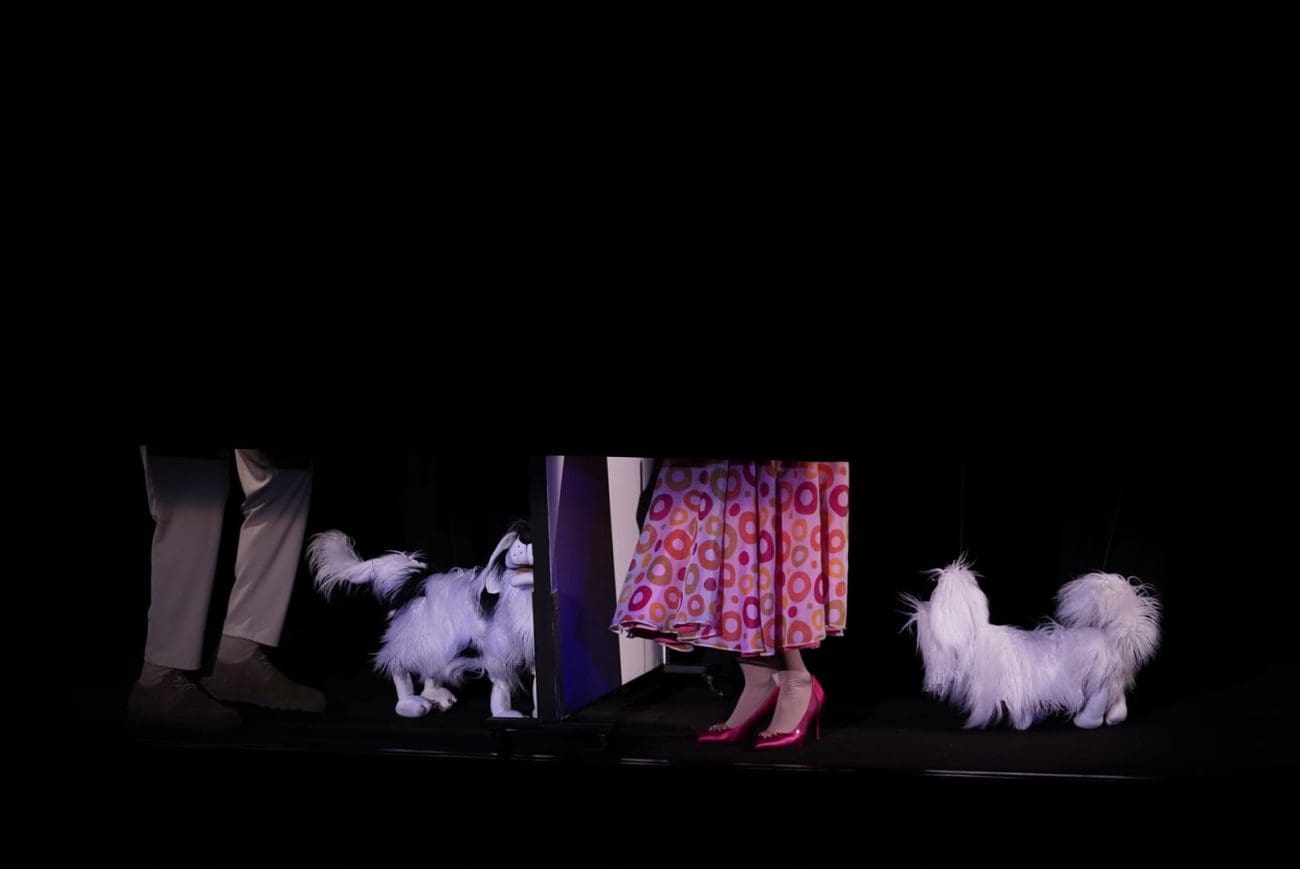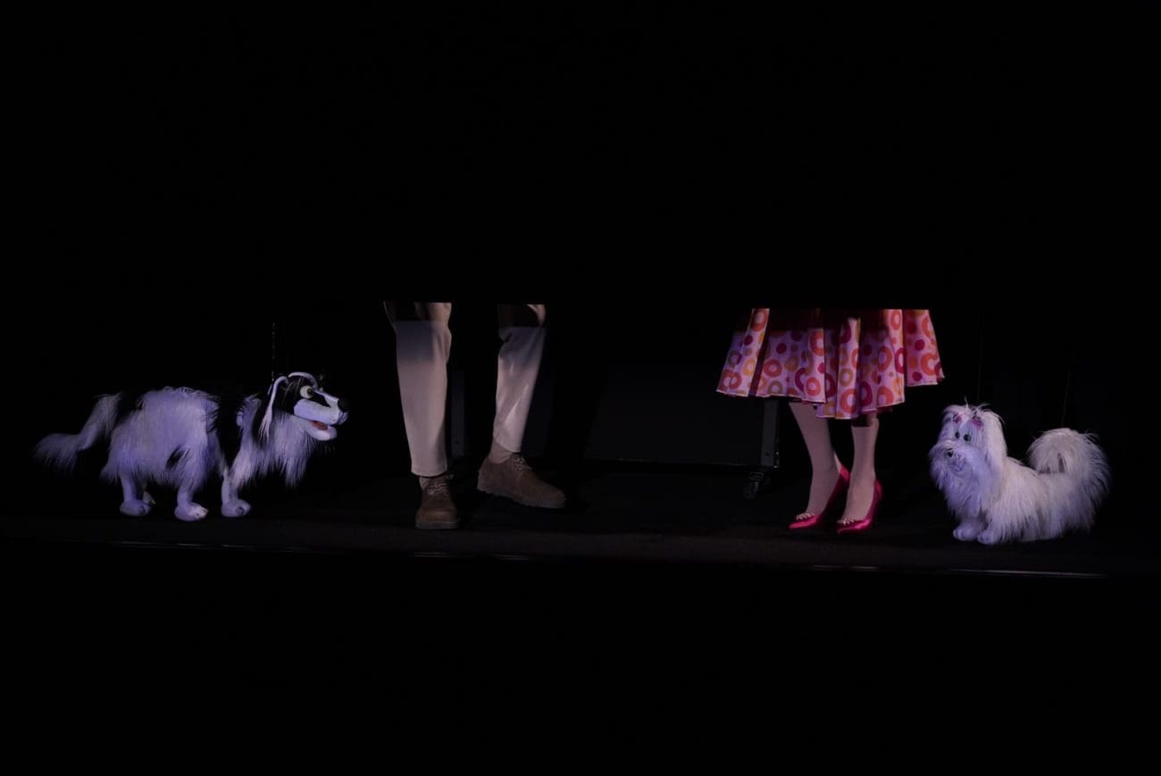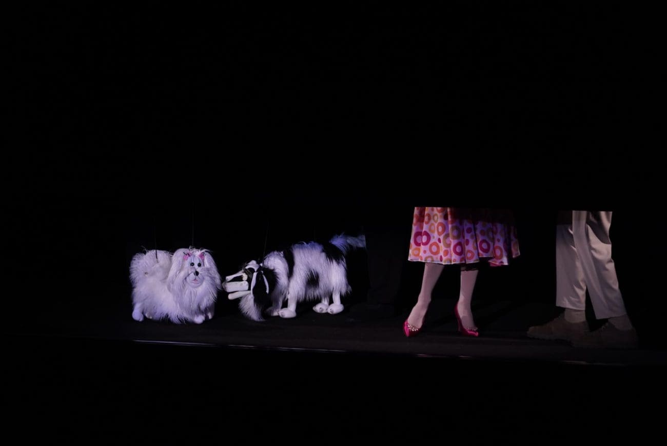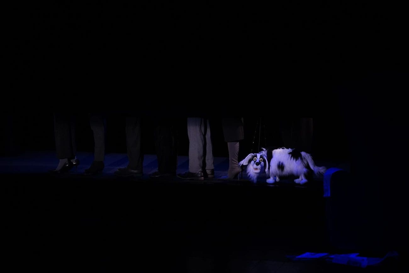 Čitava se predstava izvodi na polju od najniže žablje perspektive do struka, likovima ljudi (u kombinaciji glumačkih i lutkarskih ekstremiteta) vidimo samo noge, a u cjelini doživljavamo samo Šarka i njegovu ne baš tako tihu patnju, kujicu Pupu. Međutim, malo je reći da dojam tijekom gledanja nije nikakva odsječenost ni nedorečenost – naprotiv, svijet koji se, i figurativno i doslovno, spušta na zemlju vrlo je živahan, osoban i emotivan. Šarko, već tradicionalno poznat kao pas koji je „toliko pametan da izgleda kao da će progovoriti“, djeluje kao neiskvareni, iskreni kroničar svoga vremena. Gleda procesije u kojima se ljudi ne znaju ponašati pa „drže ruke u žepe ili na guzicu“, sluša priče svoga vlasnika o iskvarenim ljudima i pametno ne zaključuje, nego spoznaje da „nije pas beštija, čovik je beštija“ te s mnogo humora poentira da je u srži „čovik jedina beštija koja piše“. Dramatizacija je odrađena tako da se duh vremena sjajno prenosi u novi kontekst, ali nema onu vulgarno napadnu notu zbog koje gledatelj, suočen s vrištećom i neobrađenom kritikom koja je sama sebi svrha, gubi interes za uživanjem u estetskoj funkciji teksta.