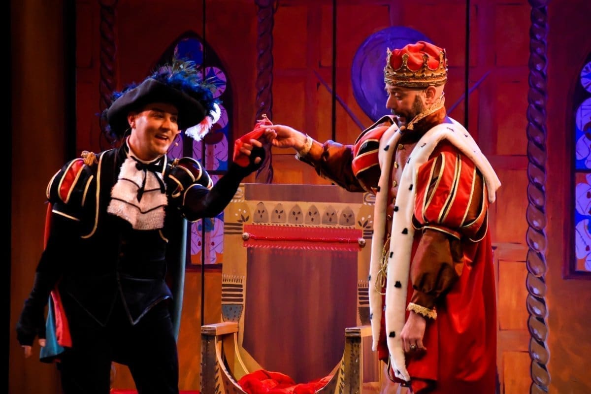 Perkušić je bio savršeno utjelovljenje Mačka – šarmantan, spretan, sveprisutan, intrigantan. Bojan Brajčić kao najmlađi sin Edgar posebno je oduševio (iako to ljubiteljima njegova djela nije nikakva novost) prekrasnim glasom koji je došao do izražaja u songovima na koje je publika reagirala kao da pjeva kakva pop-zvijezda. Onaj tko je fascinirao i u dijelovima bez ikakva teksta bila je sjajna Katarina Romac kao Princeza Lavinia – njen scenski pokret, karikaturalan hod s naglaskom na ramena koji prikazuje naučenu dvorsku uniformiranost, ali i naivnu dobroćudnost bio je silno duhovit i svrsishodan. Ništa manje očekivano – i Siniša Novković savršeno se snašao u ulozi Kralja.