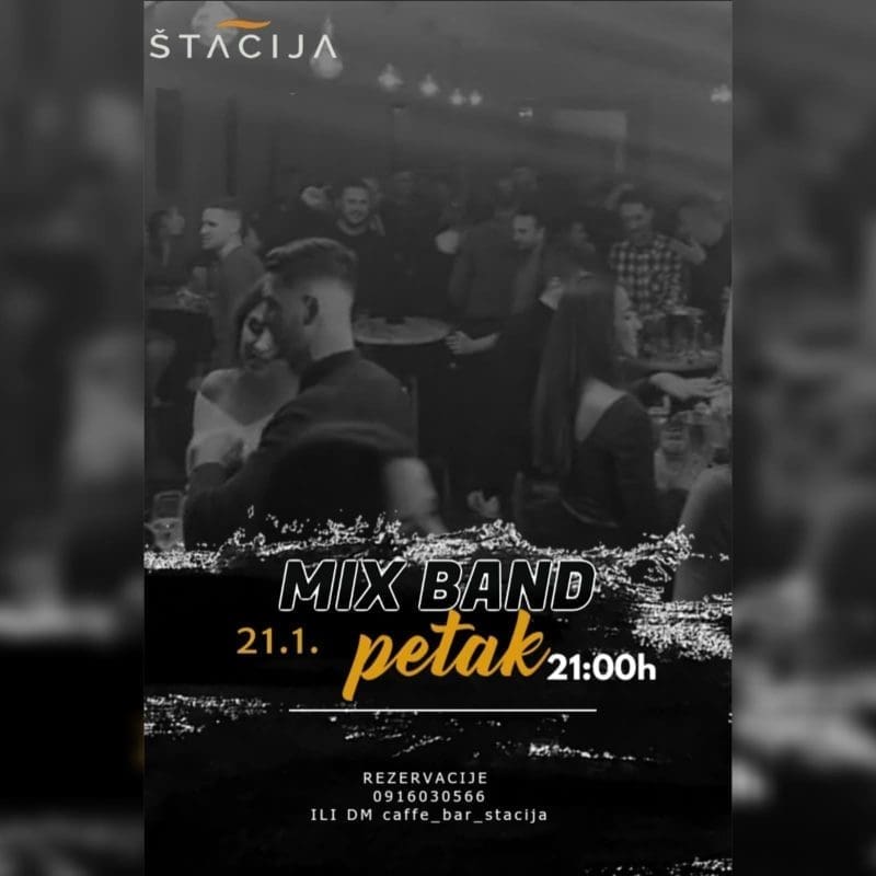Naime, s početkom u 21 sat nastupa Mix band. Kao i uvijek, očekuje se vrhunska atmosfera. Svoje mjesto možete rezervirati na broj mobitela: 091 6030566.