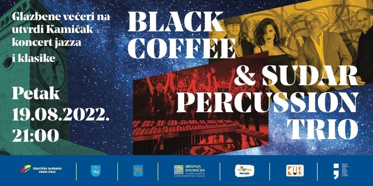Ove godine očekuje nas izvanredan program: 19. kolovoza 2022. s početkom u 21:00 sati i završetkom u 23:45 sata Sinjanima i gostima najbolje od klasične i jazz glazbe predstavit će trio Sudar Percussion i Black Coffee.