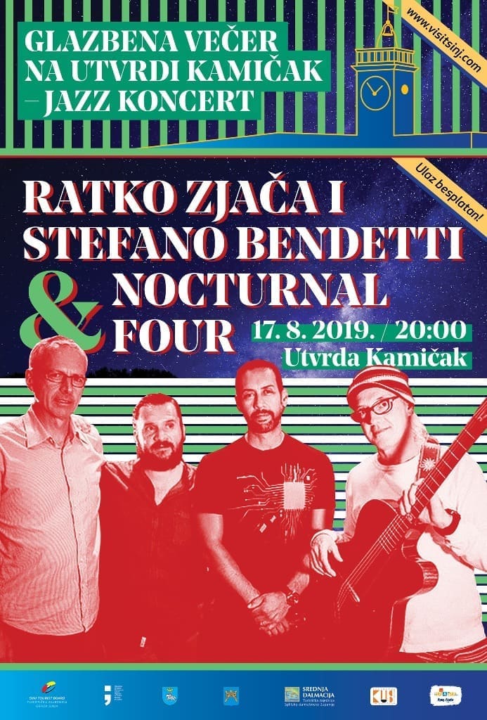 Ove godine očekuje nas izvanredan program: 17. kolovoza 2019. s početkom u 20:30 sati i završetkom u 22:30 sati Sinjanima i gostima najbolje od jazz glazbe predstavit će renomirani svjetski izvođači, Ratko Zjača – Stefano Bedetti i Nocturnal Four.