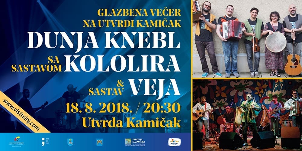 Program Glazbenih večeri na utvrdi Kamičak planiran je za 18. kolovoza 2018. s početkom u 20:30 sati i završetkom u 23:00 sata. Sinjanima i gostima najbolje od tradicijske glazbe predstavit će renomirani izvođači, Dunja Knebl sa sastavom Kololira i sastav Veja.