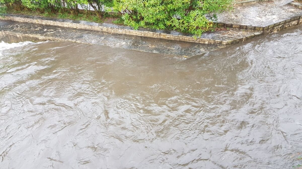 Noćašnje i jutrošnje oborine, a podsjetimo u Žrnovnici je palo 40 litara po metru kvadratnom, zamutile su rijeku Žrnovnicu u cijelosti. Rijeka je uzduž cijelog toka vidno zamućena blatom i gareži s okolnog opožarenog područja.