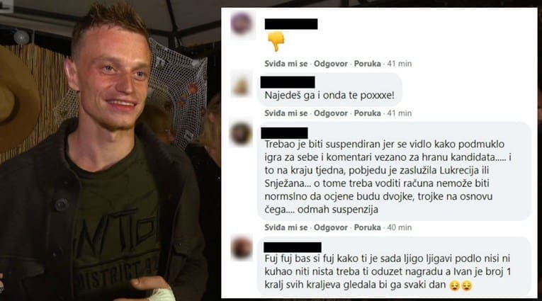 "Trebao je biti suspendiran jer se vidjelo kako podmuklo igra za sebe i komentari vezano za hranu kandidata... I to na kraju tjedna, pobjedu je zaslužila Lukrecija ili Snježana... O tome treba voditi računa ne može biti normalno da ocjene budu dvojke, trojke na osnovu čega... Odmah suspenzija."