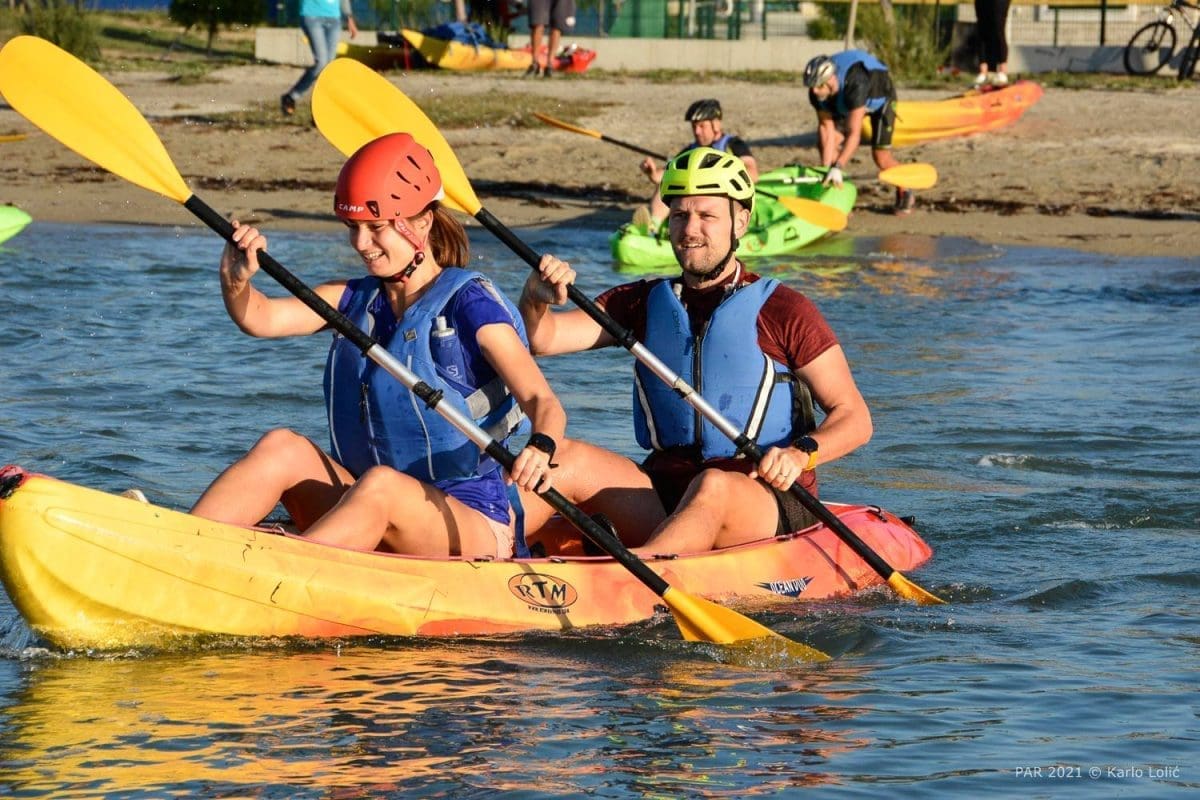 Penjačka stijena, odbojka na pijesku, simulator jedrenja i airsoft poligon samo su neke od aktivnosti u kojima se moglo uživati jučer u Podstrani. Ipak, najviše pozornosti zauzeo je glavni događaj dana, odnosno sama avanturistička utrka u kojoj su natjecatelji u paru 60-kilometarsku stazu savladavali u četiri discipline - kajakarenju, brdskom biciklizmu, trail trčanju i spuštanju konopom niz stijenu.