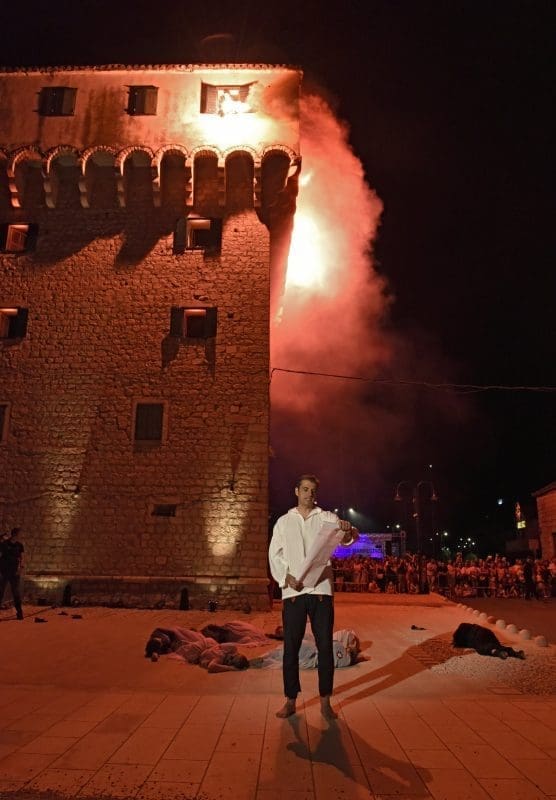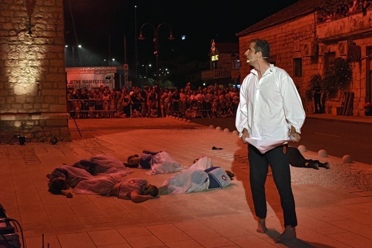 ‘Ovo je bio jedan tragični događaj, mještani Marine, na čelu s kapetanom Jerkovićem, sami su organizirali obranu. Na kraju su kapetanu Jerkoviću izvadili srce i nabili ga na kolac’ kaže nam Miki Nopling, redatelj, scenarist i autor muzike ove predstave.