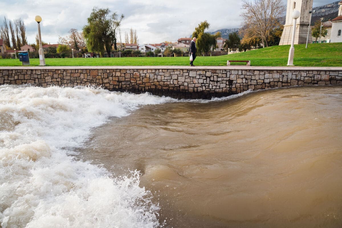 Sinoć smo izvijestili o proglašenju redovnih mjera od poplava u Solinu uslijed naglog povećanja vodostaja rijeke Jadro. Naime protekle noći, na mjernoj postaji Hrvatskih voda u Majdanu razina vode prešla je 160 centimetara, što znači da je solinsko područje bilo na granici proglašenja izvanrednih mjera obrane od poplava, ali cijelo to vrijeme bile su na snazi redovne mjere obrane od poplava.
