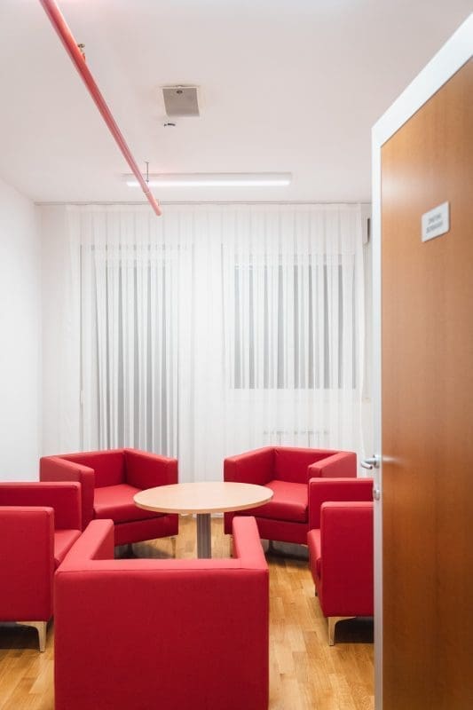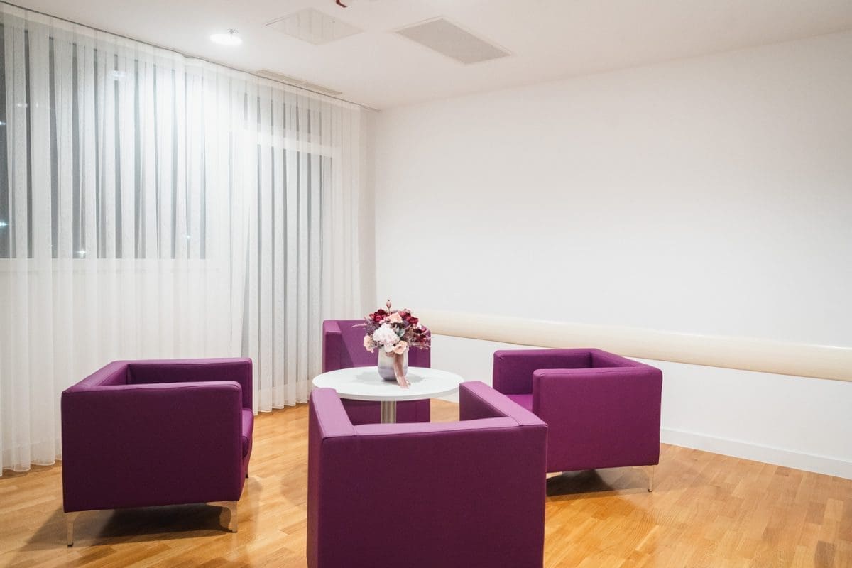 U prizemlju zgrade, na parceli koju su prije 15 godina sestre Milka i Tonka Matošić iz Splita darovale katoličkoj udruzi Lovret, instalirana je kuhinja, a na prvom katu su ordinacije i administracija. Šest jednokrevetnih i osam dvokrevetnih soba smješteno je na drugoj i trećoj etaži.