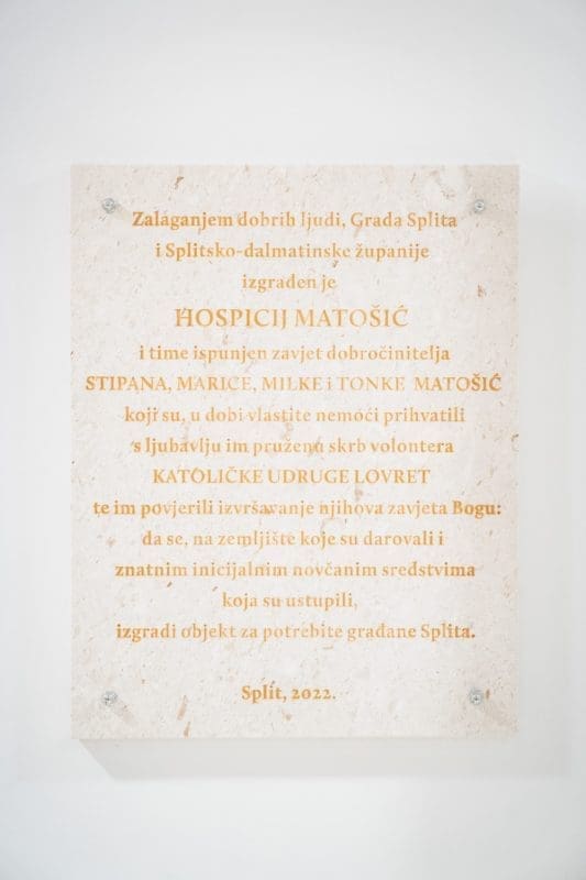 Hospicij "Matošić" na splitskom Brniku dobio je uporabnu dozvolu prije godinu dana i uskoro će prvim pacijentima u novootvorenoj ustanovi biti omogućena liječnička skrb. Kapaciteta ima za 22 korisnika, no državni zdravstveni sustav i Grad Split financirat će za sada njih 16.