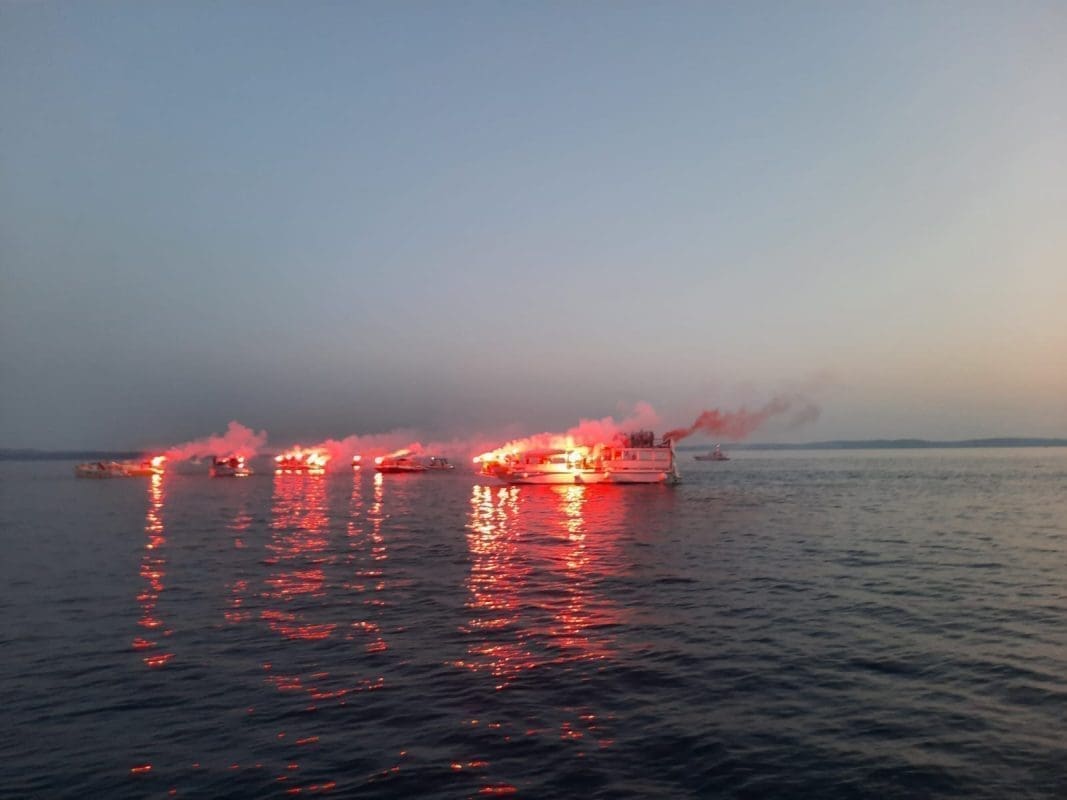 Matejevi prijatelji, ekipa, kolegice, kolege i brodari, spremaju mu veliki oproštaj. U 20.30 ispred splitske luke napravili su špalir brodicama i zapalili baklje. Tada je se gradom zaorio gromoglasni pljesak.