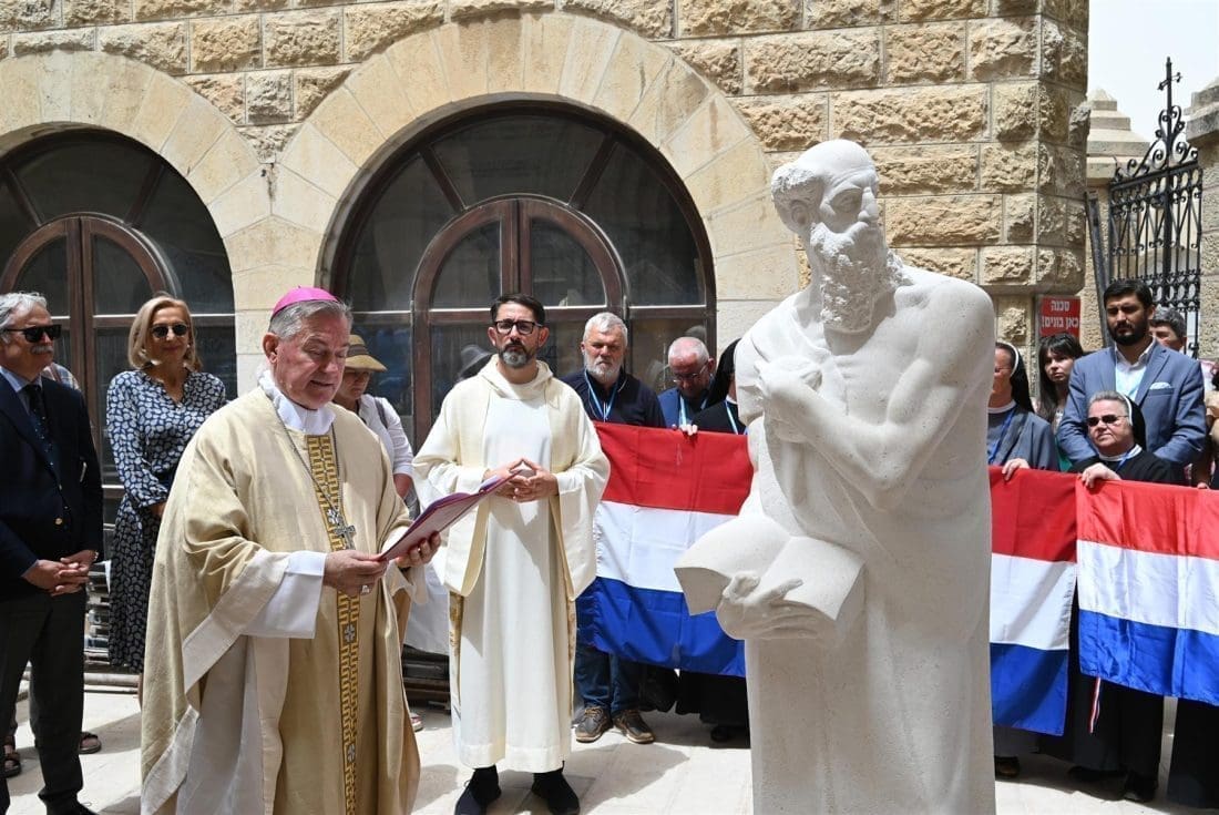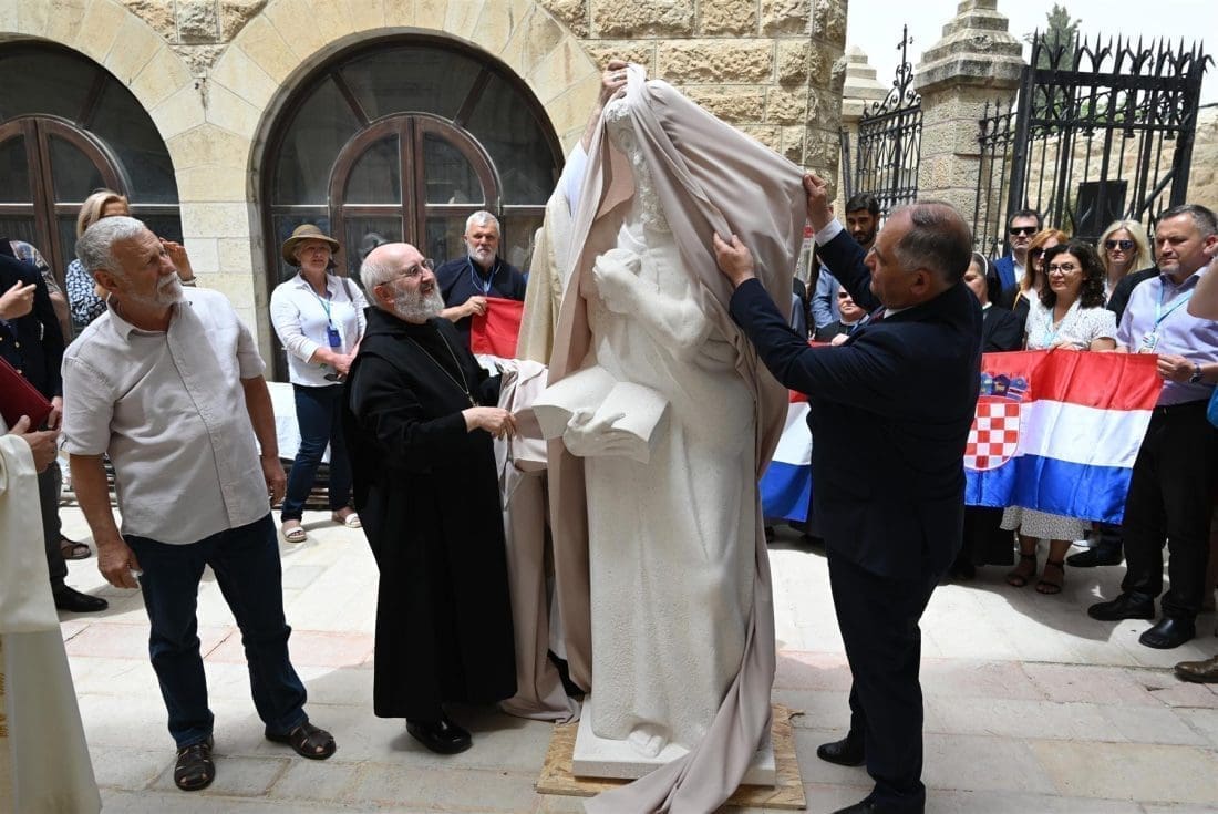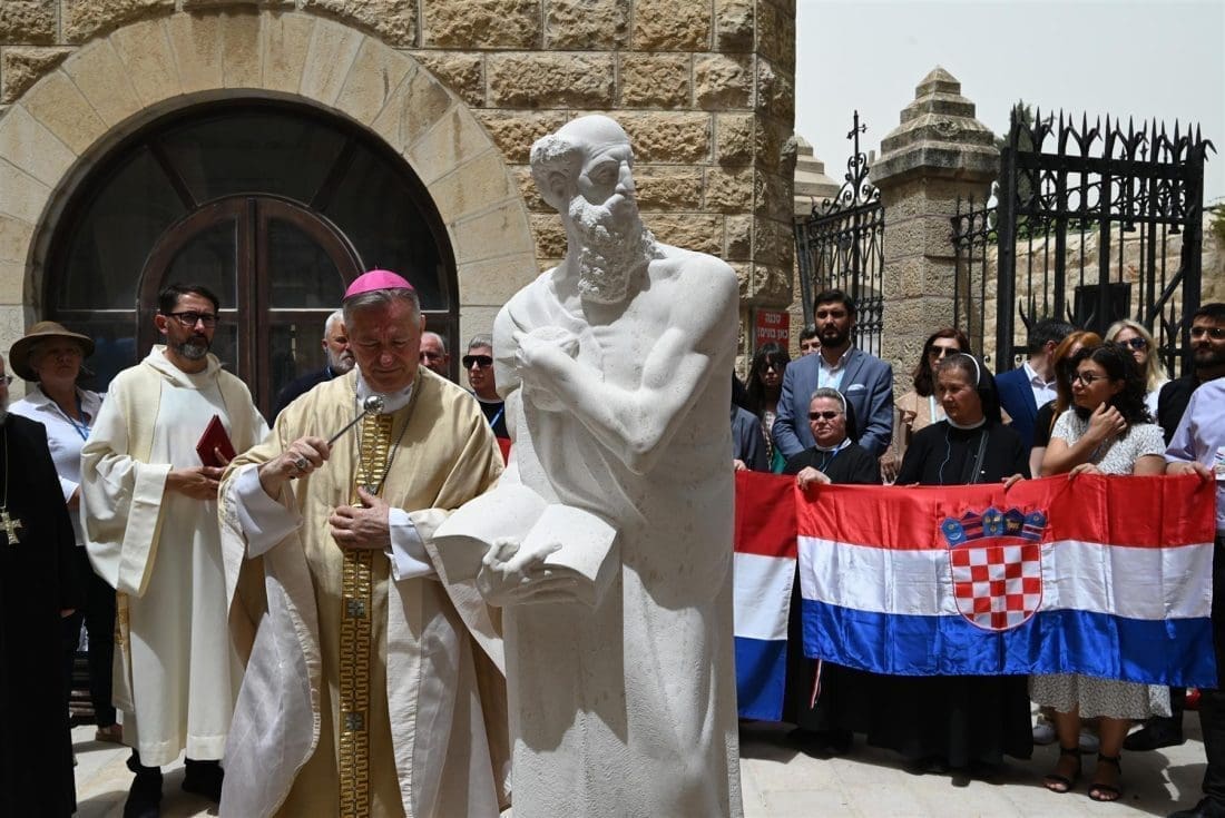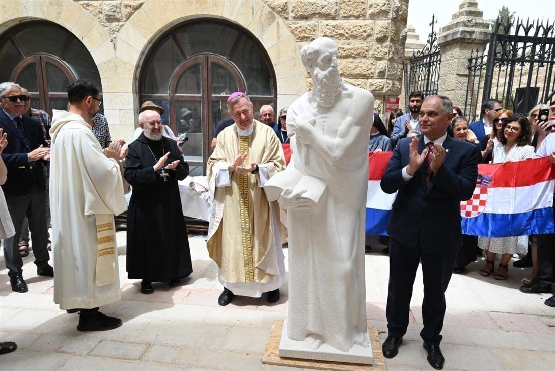Franjevac konventualac fra Tomislav Glavnik navodi kako je ovaj kip, postavljen na Sionu, znak prepoznavanja hrvatskoga naroda u Izraelu. „Sa Svetom zemljom bili smo uvijek povezani, bilo preko hodočasnika, utjecajnih svećenika ili svetaca poput Svetoga Nikole Tavelića. Upravo ovo postavljanje kipa Svetoga Jeronima je jedan veliki znak”, izjavio je Glavnik. Otkrivanju kipa nazočili su i zamjenik župana Stipe Čogelja, predsjednik Županijske skupštine Mate Šimundić, rektor Sveučilišta u Splitu dr. sc. Dragan Ljutić i hrvatska veleposlanica u Izraelu Vesela Mrđen Korać.