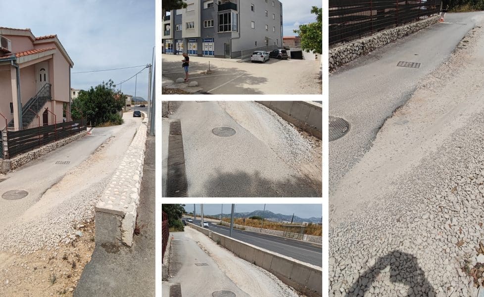 "Nakon što je napravljena nova cesta na Kili, zgradi na adresi Vukovarska 199 je ukinut stari i jedini prilaz glavnoj prometnici i napravljen novi prilaz kao što vidite na slikama. Taj prilaz je nedovoljno širok i neasfaltiran, prašnjav, pun rupa i velikih kamenja, izvrstan za oštetiti auto. Tim putem jedva može proći osobno vozilo", žali nam se čitatelj koji nam je poslao fotografije.