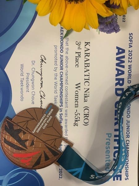 Članica splitskog Marjana Nika Karabatić osvojila je brončanu medalju na svjetskom juniorskom prvenstvu u kategoriji do 55 kilograma. Nova velika nada trofejnog taekwondo kluba u turnir je ušla velikom pobjedom protiv nezgodne Iranke Fathi Fersehteh s 2:1 u rundama da bi u sljedećem kolu na isti način slavila i protiv Ukrajinke Darye Kostenevych koja je u prvoj rundi puno problema zadala Niki svojom visinom. Četvrtfinalna borba za medalju i plasman u polufinale protiv Austrijanke Paule Gratzl prošla je s lakoćom i 2:0 u rundama, 13:0 u prvoj i 11:5 u drugoj rundi. Ipak, polufinalni sraz protiv reprezentativke Koreje otišao je na stranu Kim te je Karabatić završila s broncom.