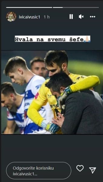 Golman NK Osijek, Ivica Ivušić napisao je: "Hvala na svemu, šefe" uz fotografiju na kojoj grli već sada bivšeg trenera.
