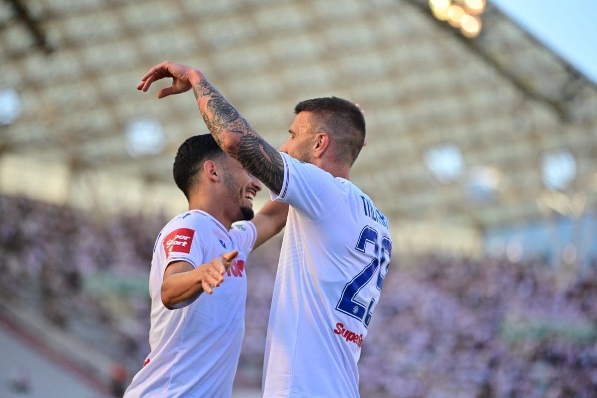 Hajduk i Šibenik na Poljudu od 17 sati igraju posljednju, 36. prvenstvenu utakmicu. Uoči početka zadnjeg kola SuperSport HNL-a, cijeli je Poljud oduševljeno pozdravio članove Vaterpolo kluba Jadran, aktualnog prvaka Hrvatske. Bijeli su u slavljeničkom raspoloženju zbog osvajanja Kupa nakon finalnog ogleda sa Šibenikom, a današnji je prigodni program trajao od ranoga jutra. Na stadionu je uoči utakmice publiku zabavila Jasna Zlokić, posebno uz hit „Ja sam ti jedini drug“.
