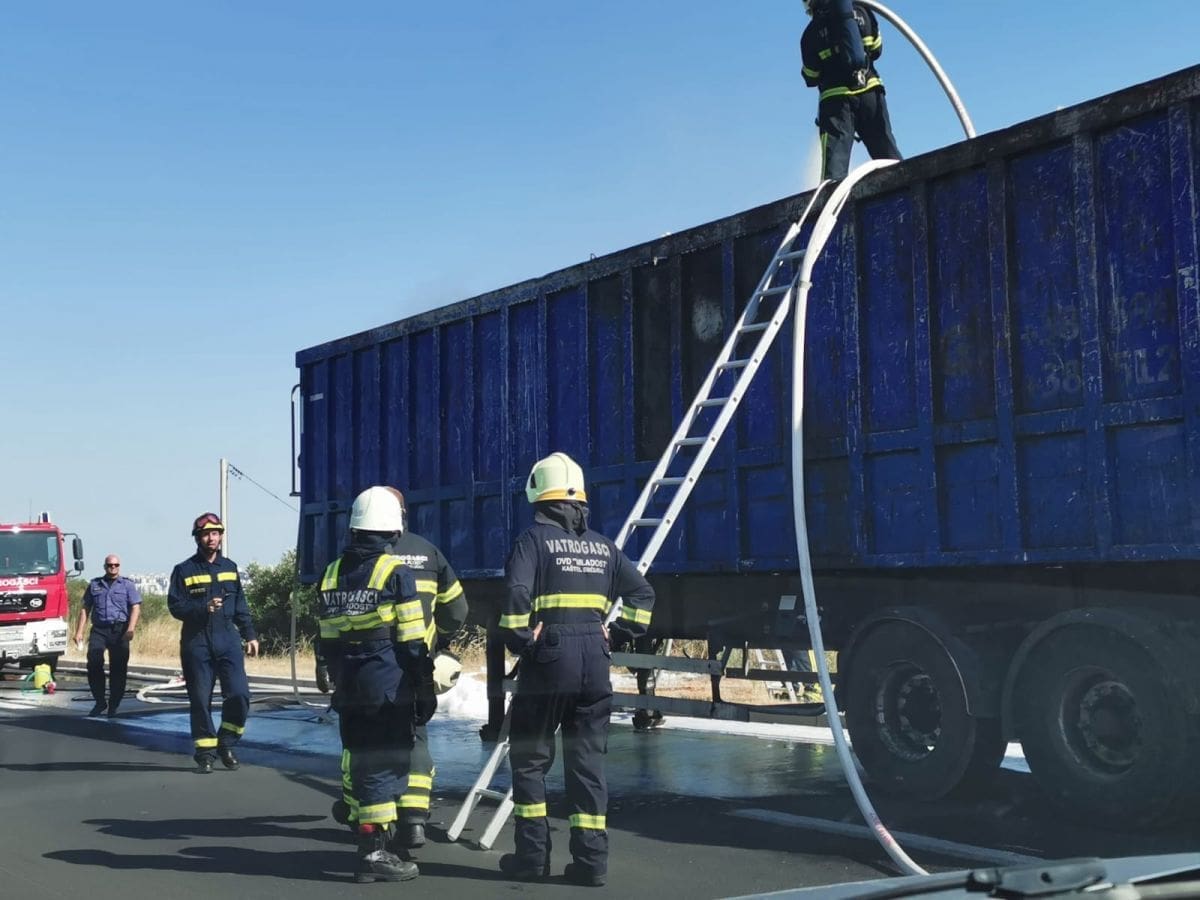 U 16:20 dogodio se požar na prikolici teretnog automobila na magistrali u Kaštelima.