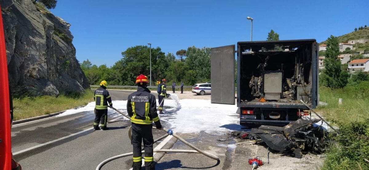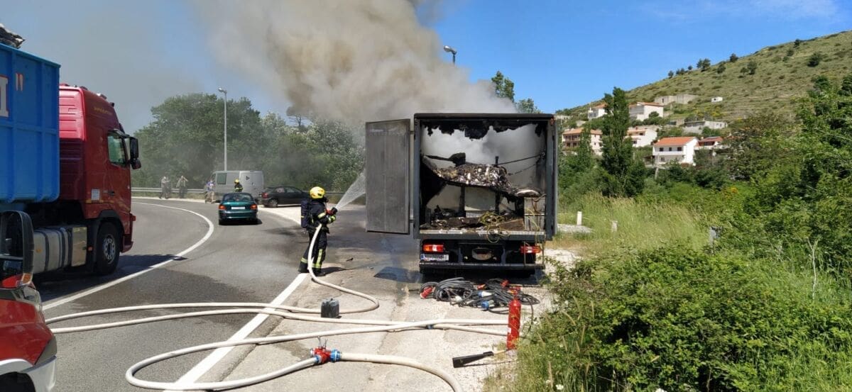 Oko 10 sati i 45 minuta došlo je do požara na kamionu u Žrnovnici. Nakon što se pojavio dim, vozač je parkirao kod križa na cesti ispod Peruna.