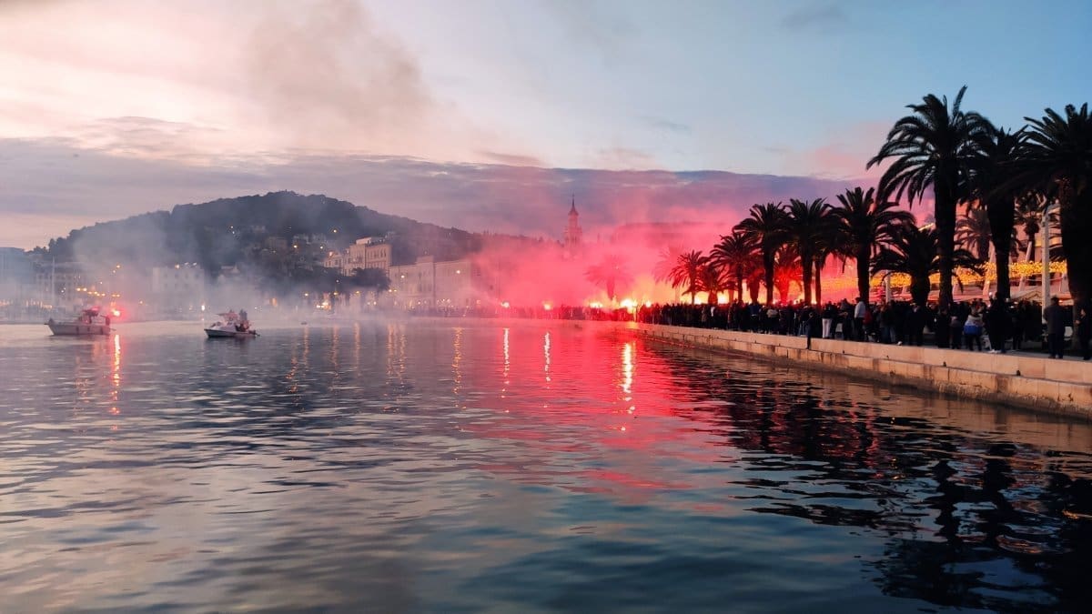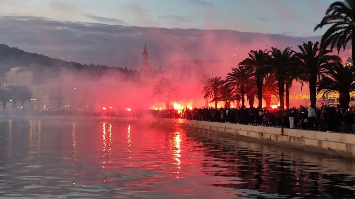 Publikom dominira mlađa generacija. Prema policiji 15 tisuća ljudi čeka hrvatsku nogometnu reprezentaciju. Dok se Vatreni čekaju u publici se pale baklje i bengalke.