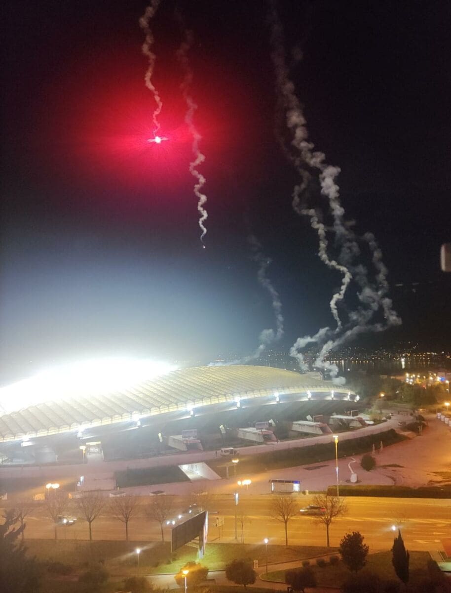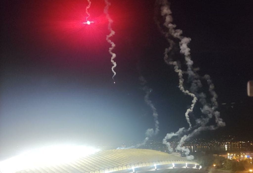 Začulo se nekoliko topovskih udara, a onda su poletjele rakete. Neke od njih završile su na krovu poljudskog stadiona.