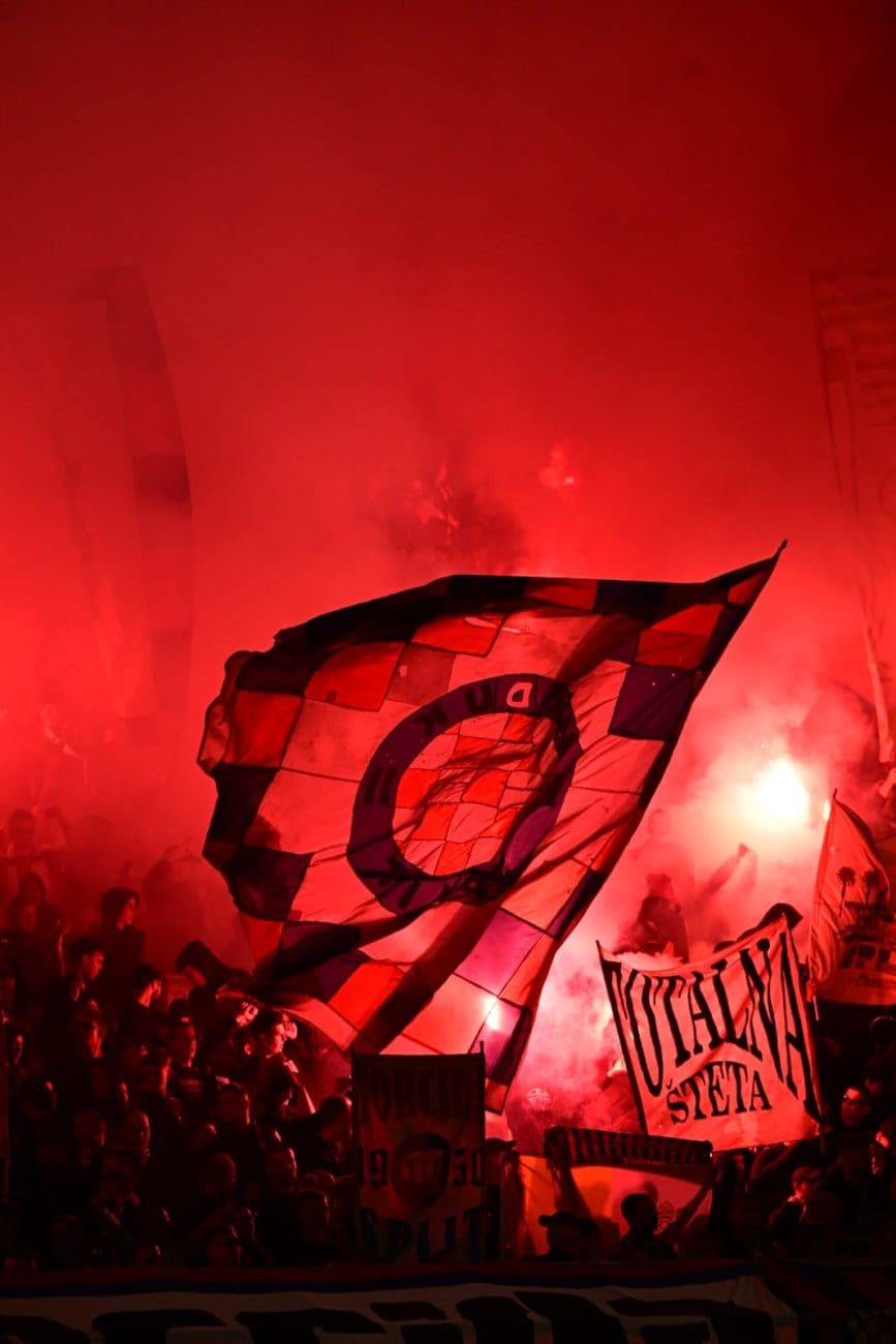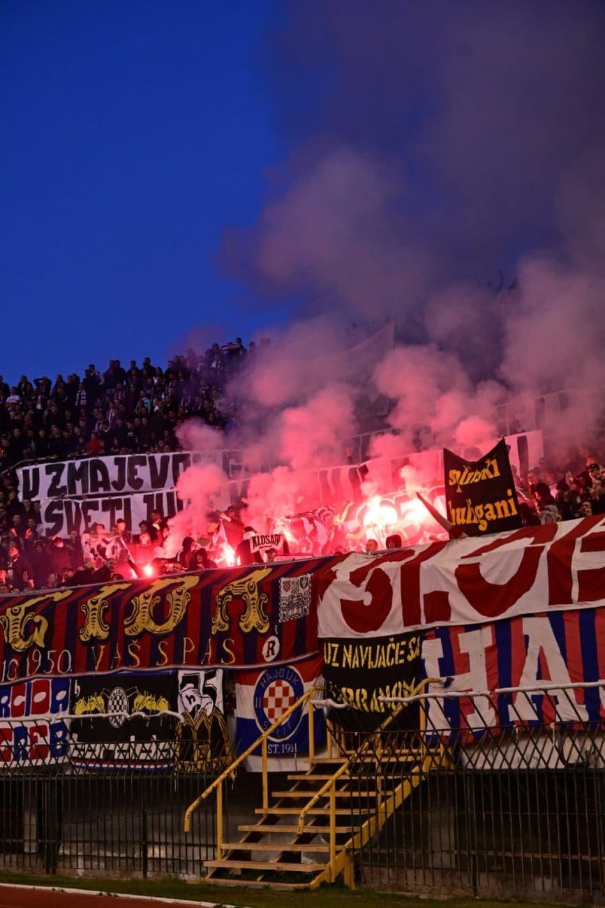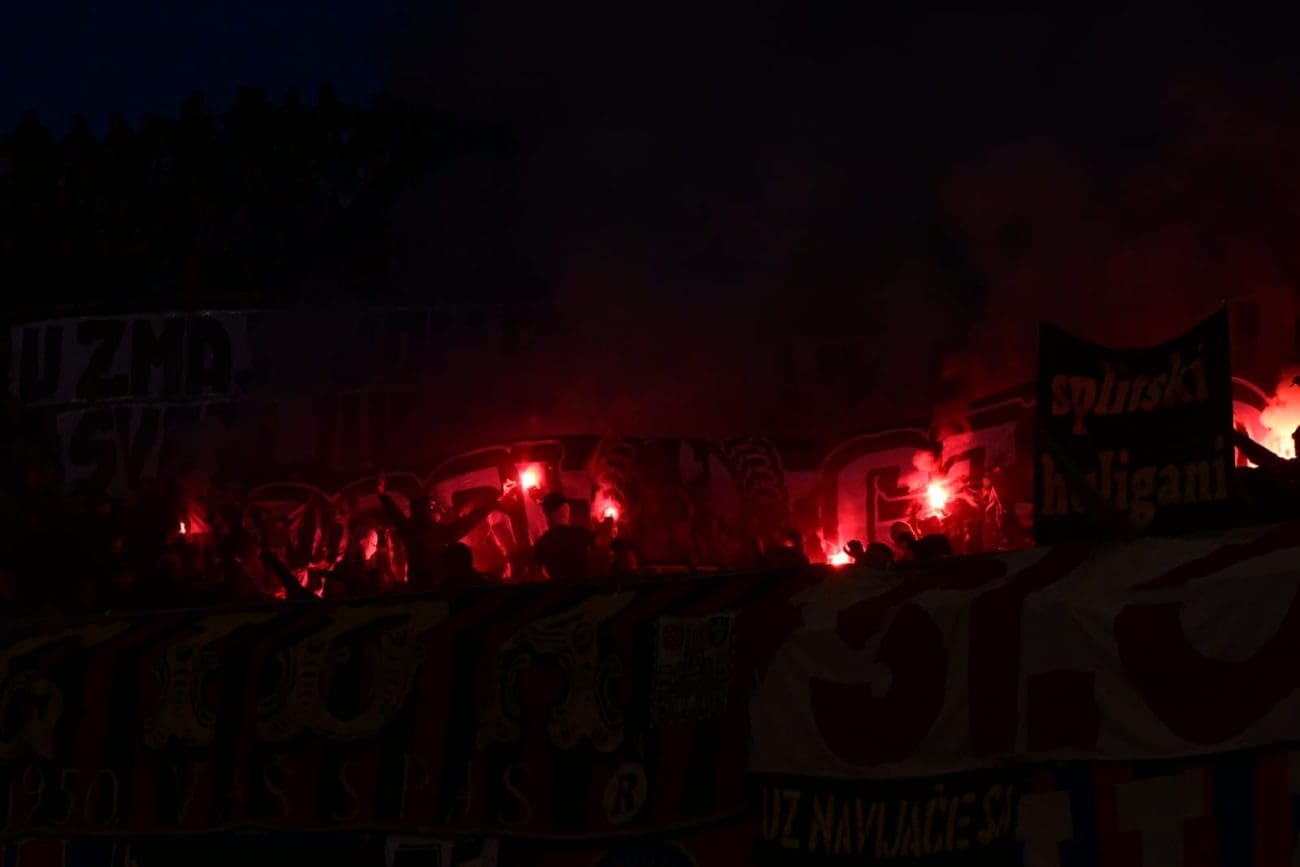 Bakljada, koju je organizirala Torcida, zapalila je atmosferu i dodatno podigla ionako glasno navijanje. Dim se širio stadionom, pjesma nije prestajala.