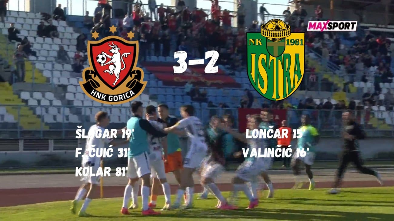 S druge je strane Gorica uzvratila u 19. minuti: Leš je proigrao Šlogara, a potonji je pucao u Majkićev drugi kut, neobranjivo za 1:2. Za poravnanje je rezultata zaslužan bio F. Čuić. Ubacio je Mikanović do Ndockyta, a on proslijedio nečuvanom Čuiću koji je mirno poslao loptu u mrežu za 2:2. U 74. je minuti pocrvenio trener Gorice Mario Carević pa je ostatak susreta gledao s tribine. U 81. je minuti Kolar pogotkom iskosa postavio konačnih 3:2 za Goricu koja je pobjegla Šibeniku na 4 boda, a Istra je ostala na 6. mjestu.