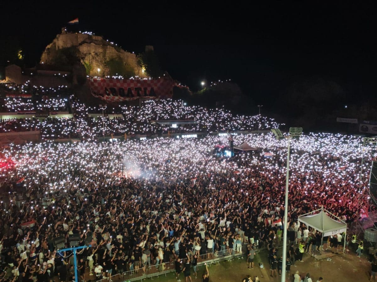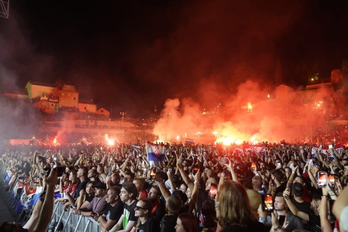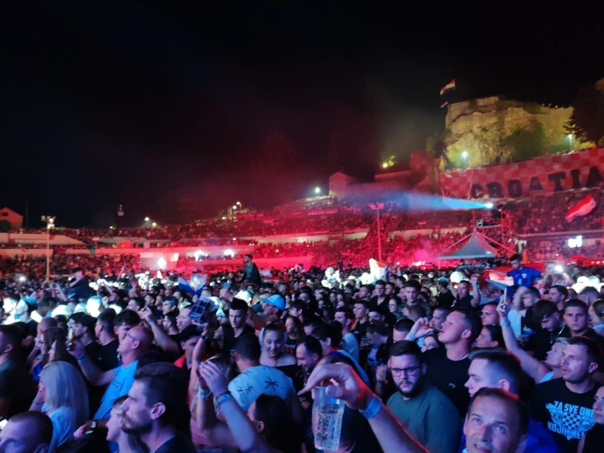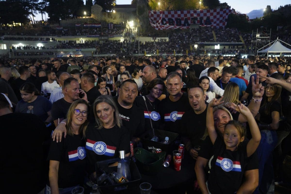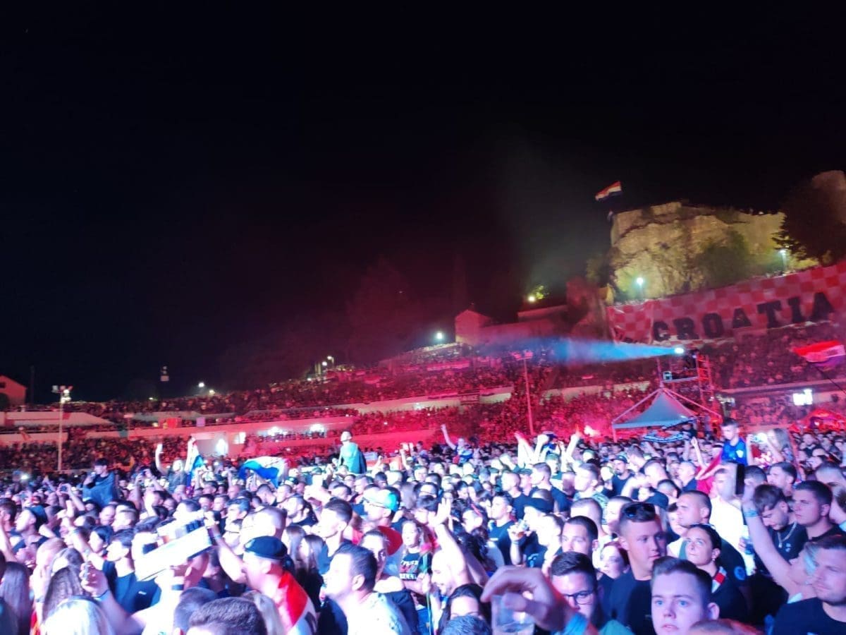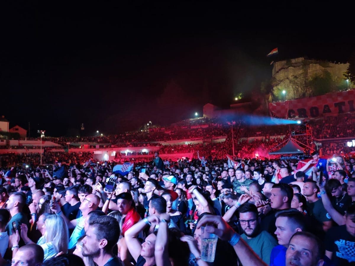 Posjetitelji su oduševljeni i nastao je pravi delirij kada su se ugasila svjetla na pozornici. Pale se baklje, pjeva se i vijore se zastave na prepunom stadionu u Imotskom.