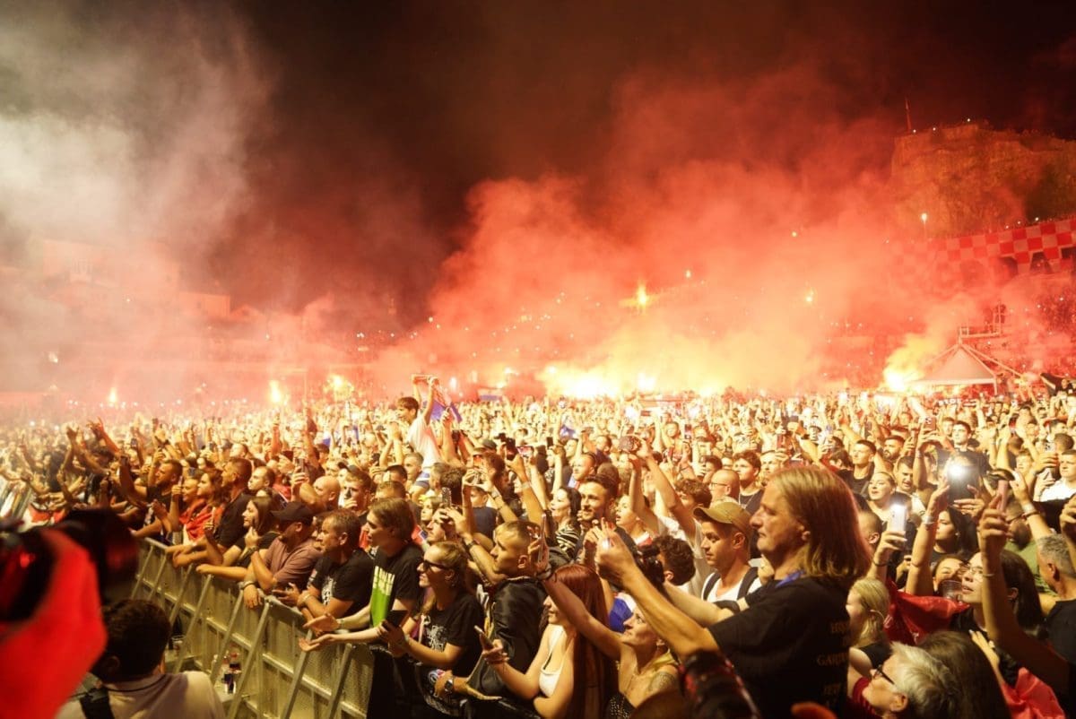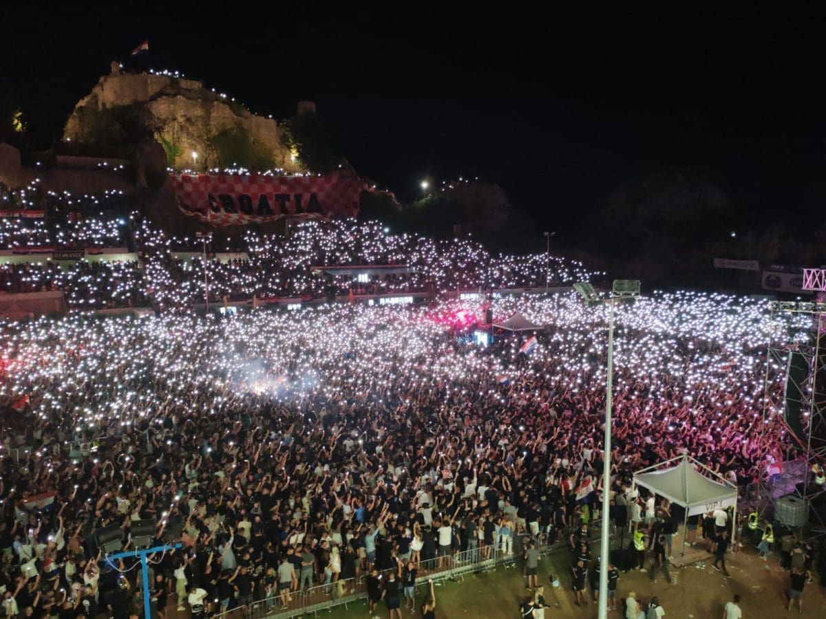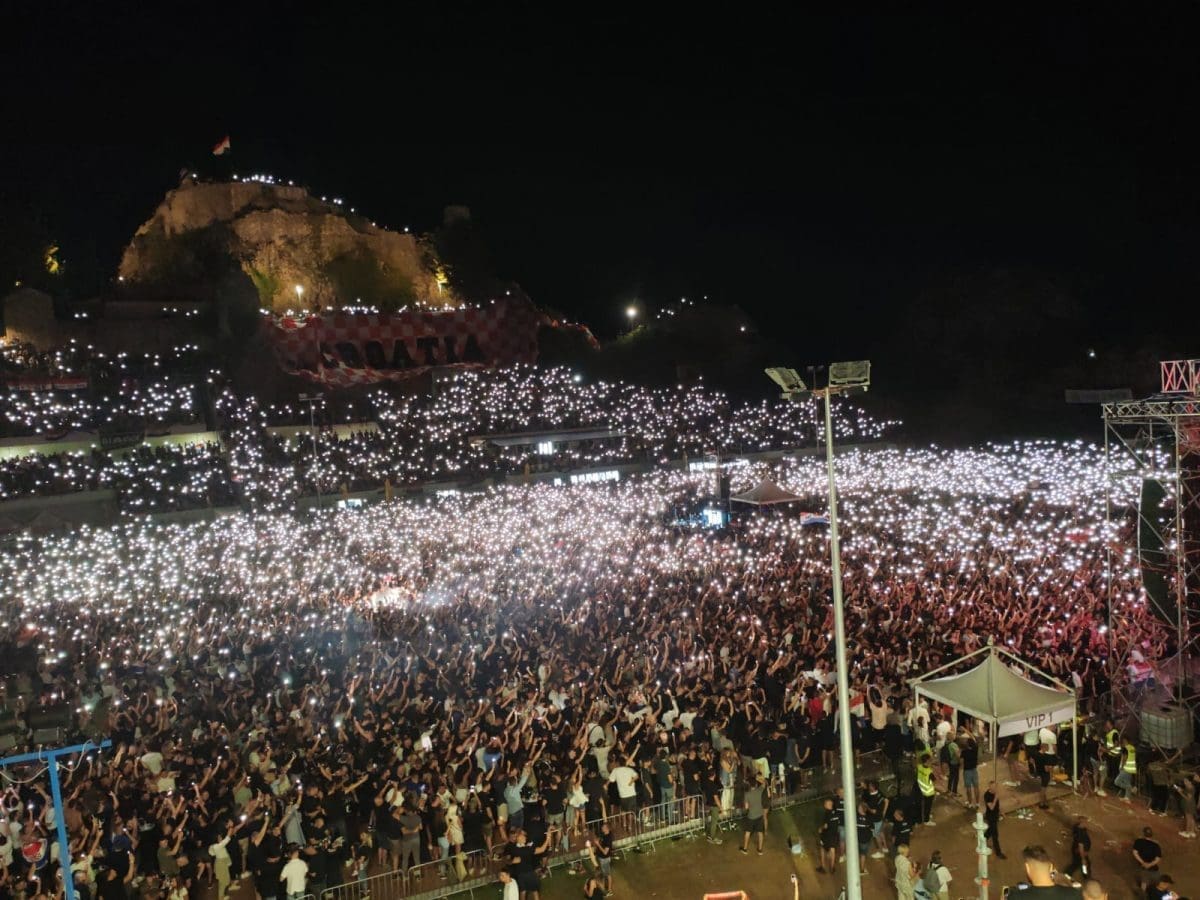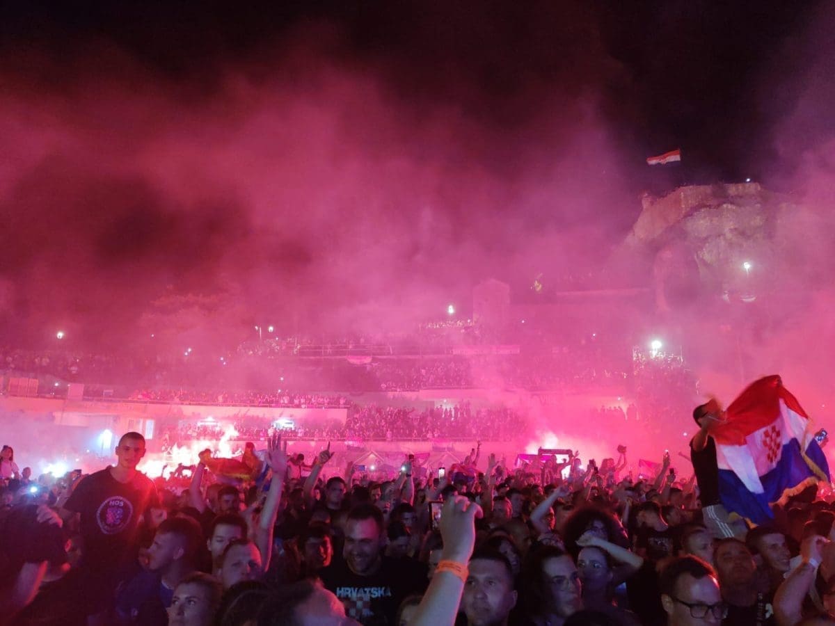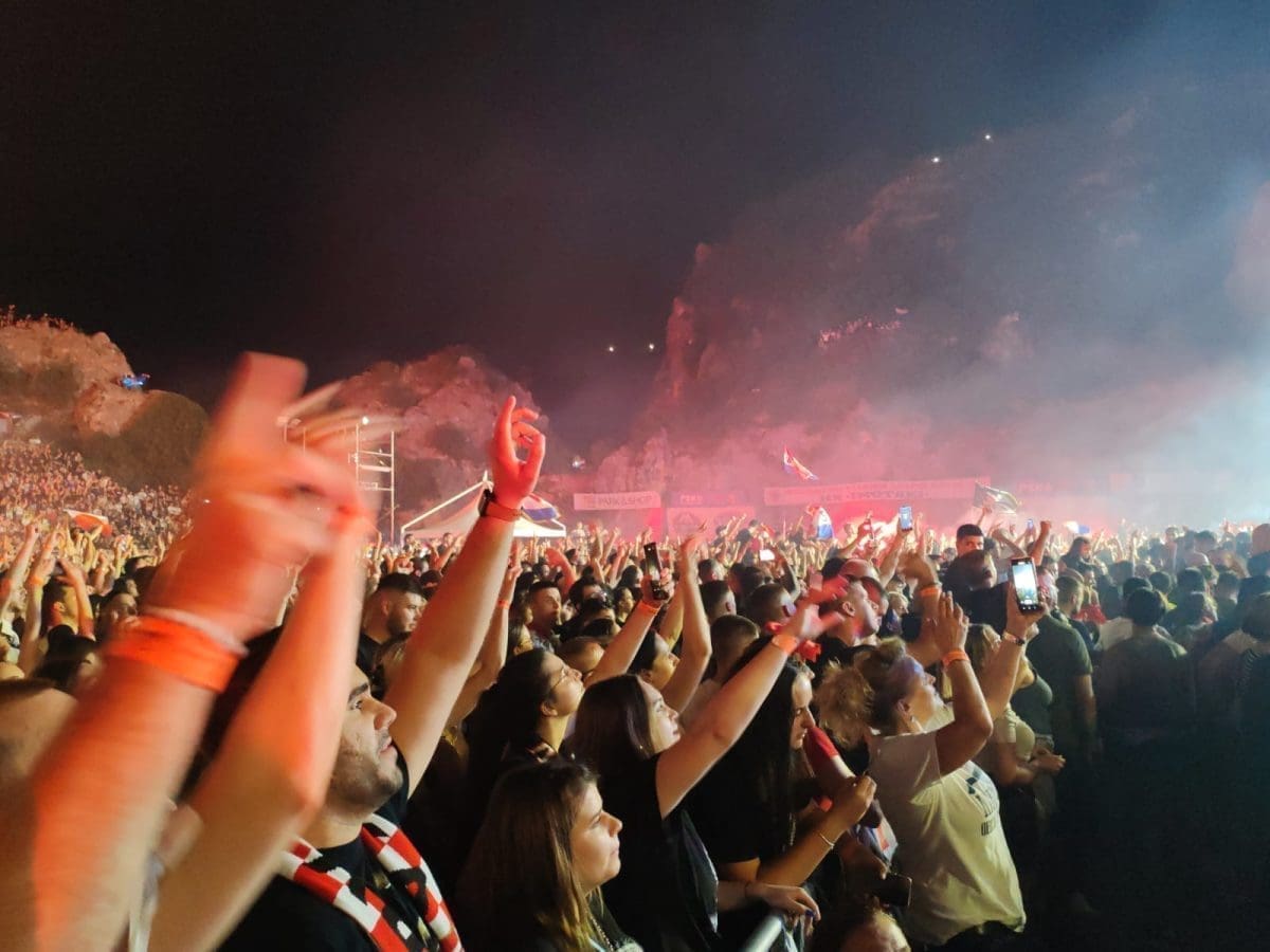 Posjetitelji su oduševljeni i nastao je pravi delirij kada su se ugasila svjetla na pozornici. Pale se baklje, pjeva se i vijore se zastave na prepunom stadionu u Imotskom.