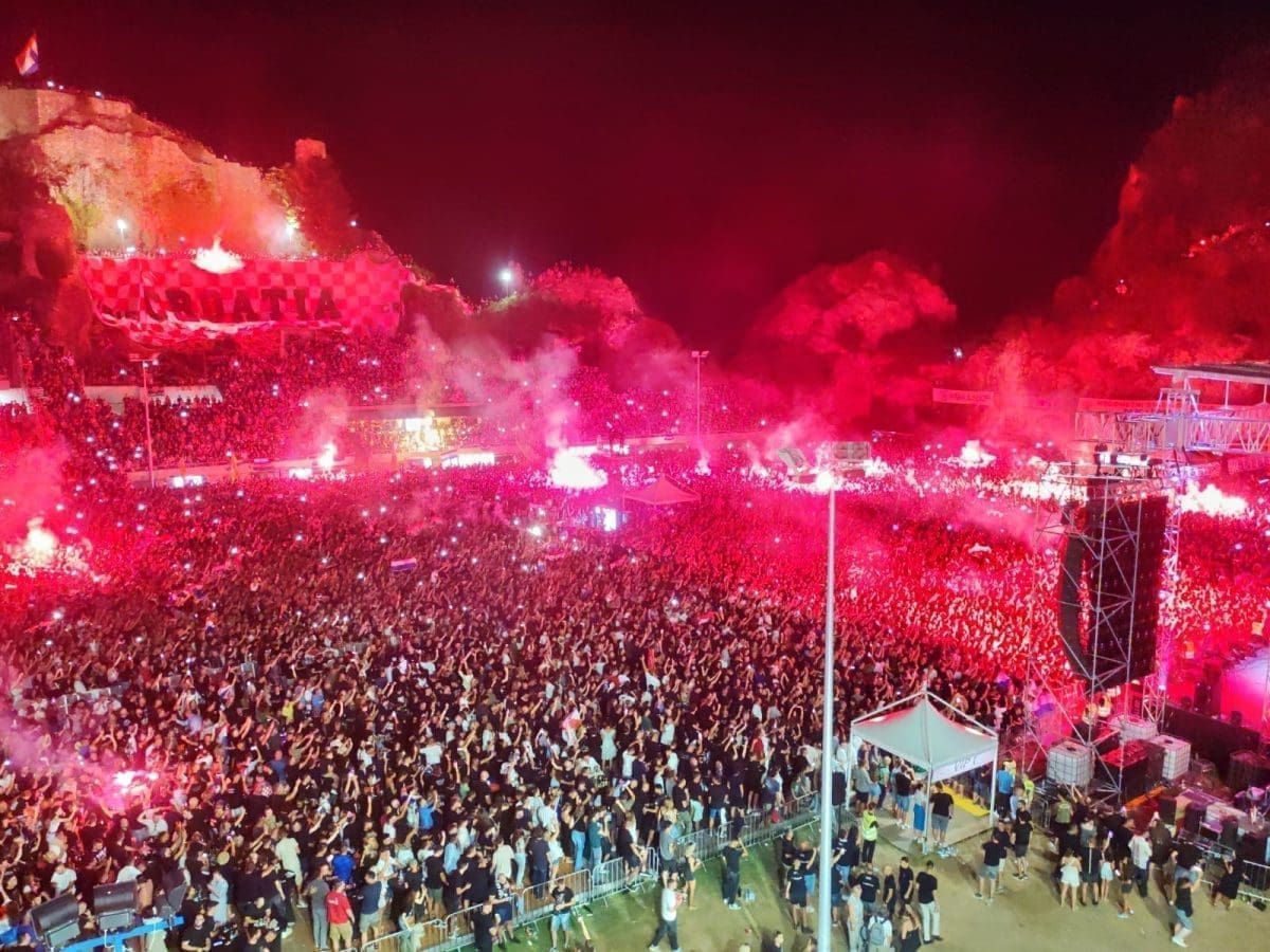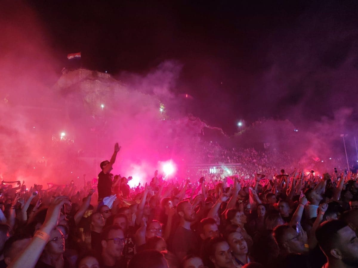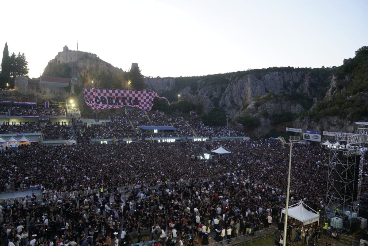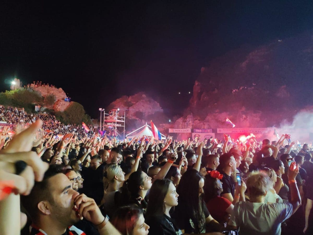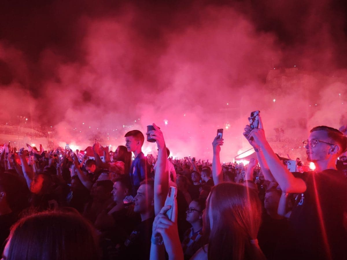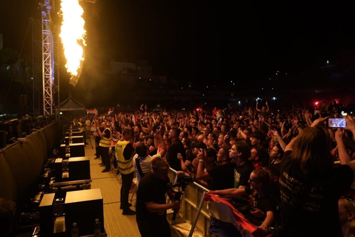 Posjetitelji su oduševljeni i nastao je pravi delirij kada su se ugasila svjetla na pozornici. Pale se baklje, pjeva se i vijore se zastave na prepunom stadionu u Imotskom.