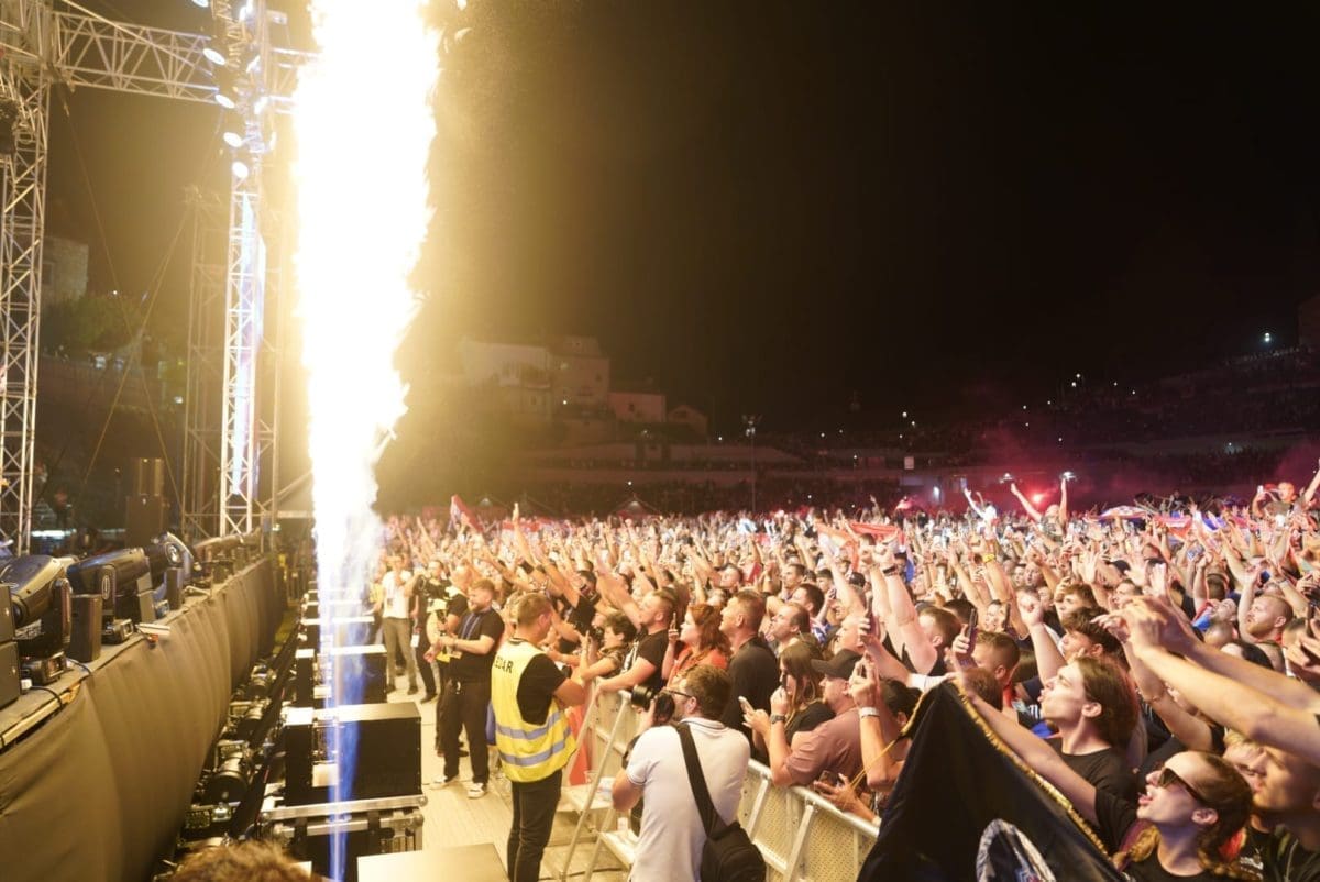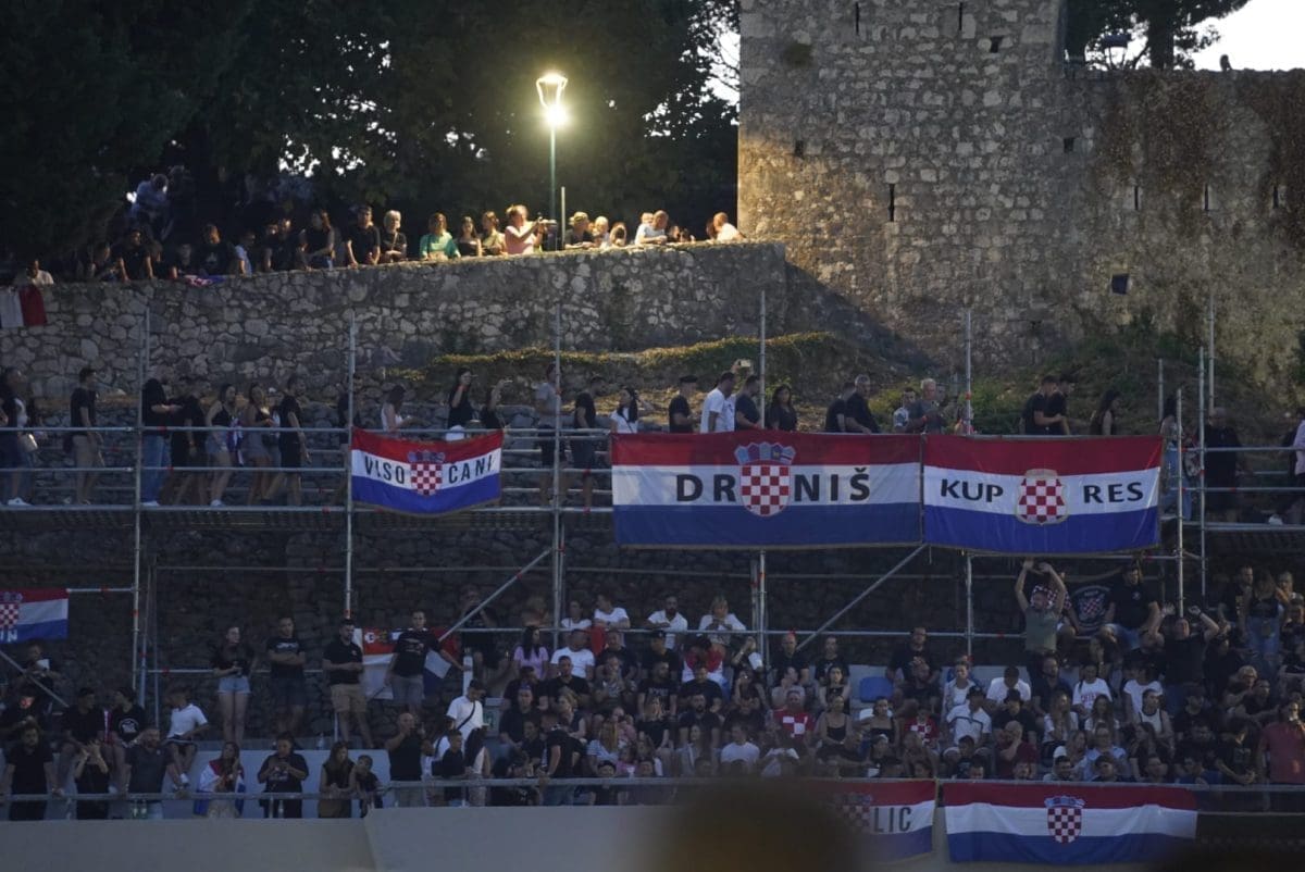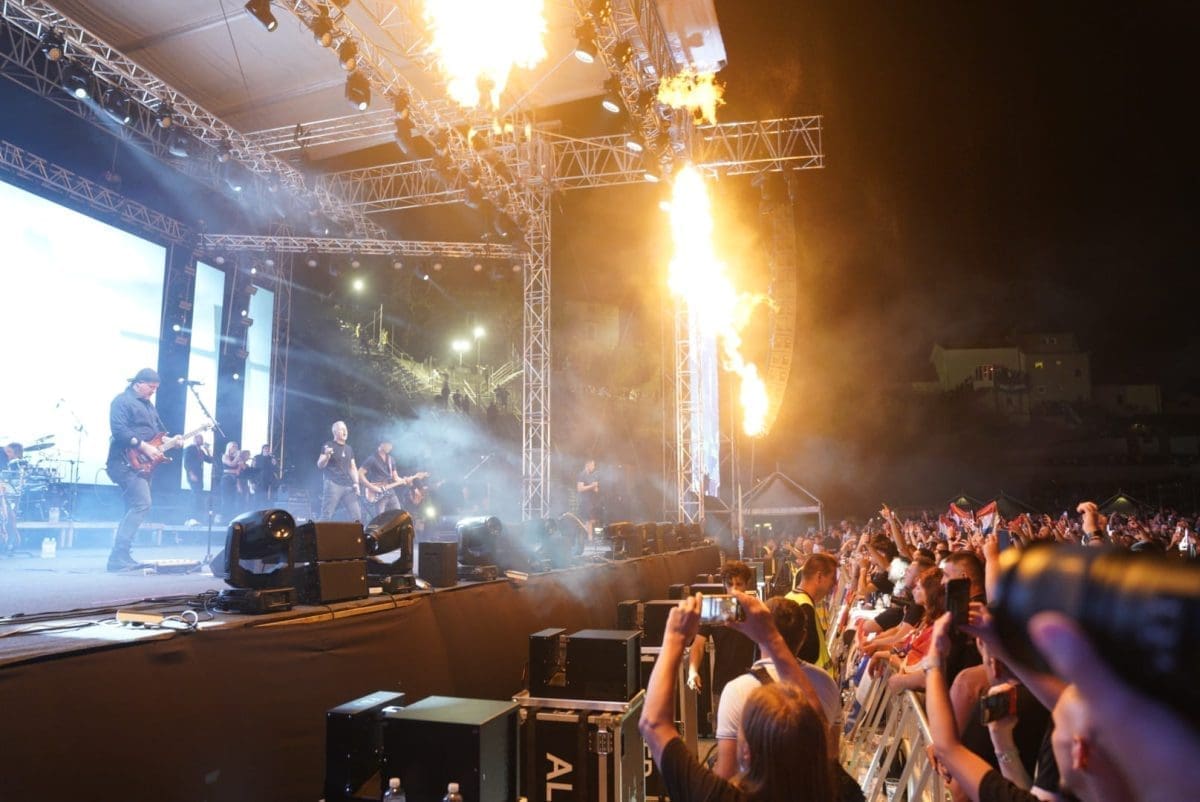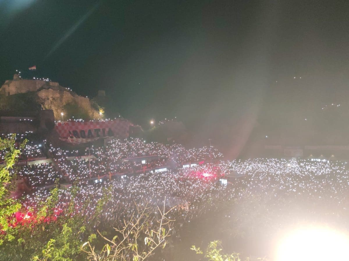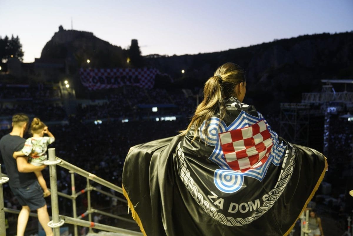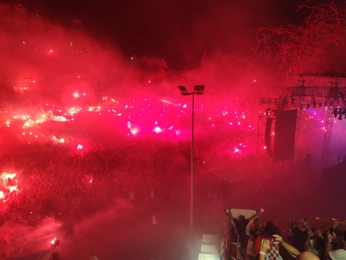 Posjetitelji su oduševljeni i nastao je pravi delirij kada su se ugasila svjetla na pozornici. Pale se baklje, pjeva se i vijore se zastave na prepunom stadionu u Imotskom.