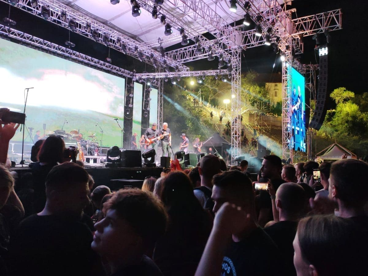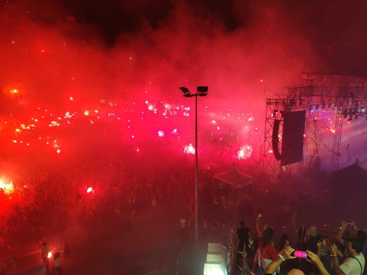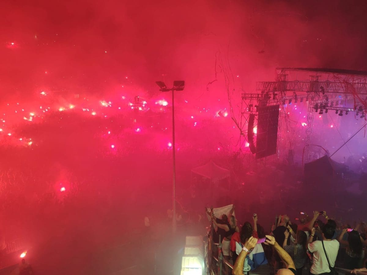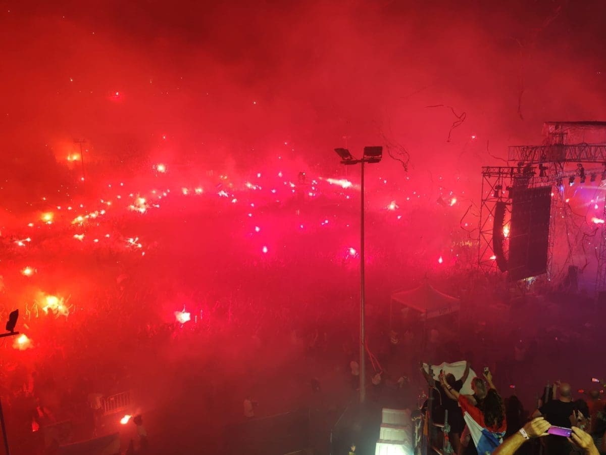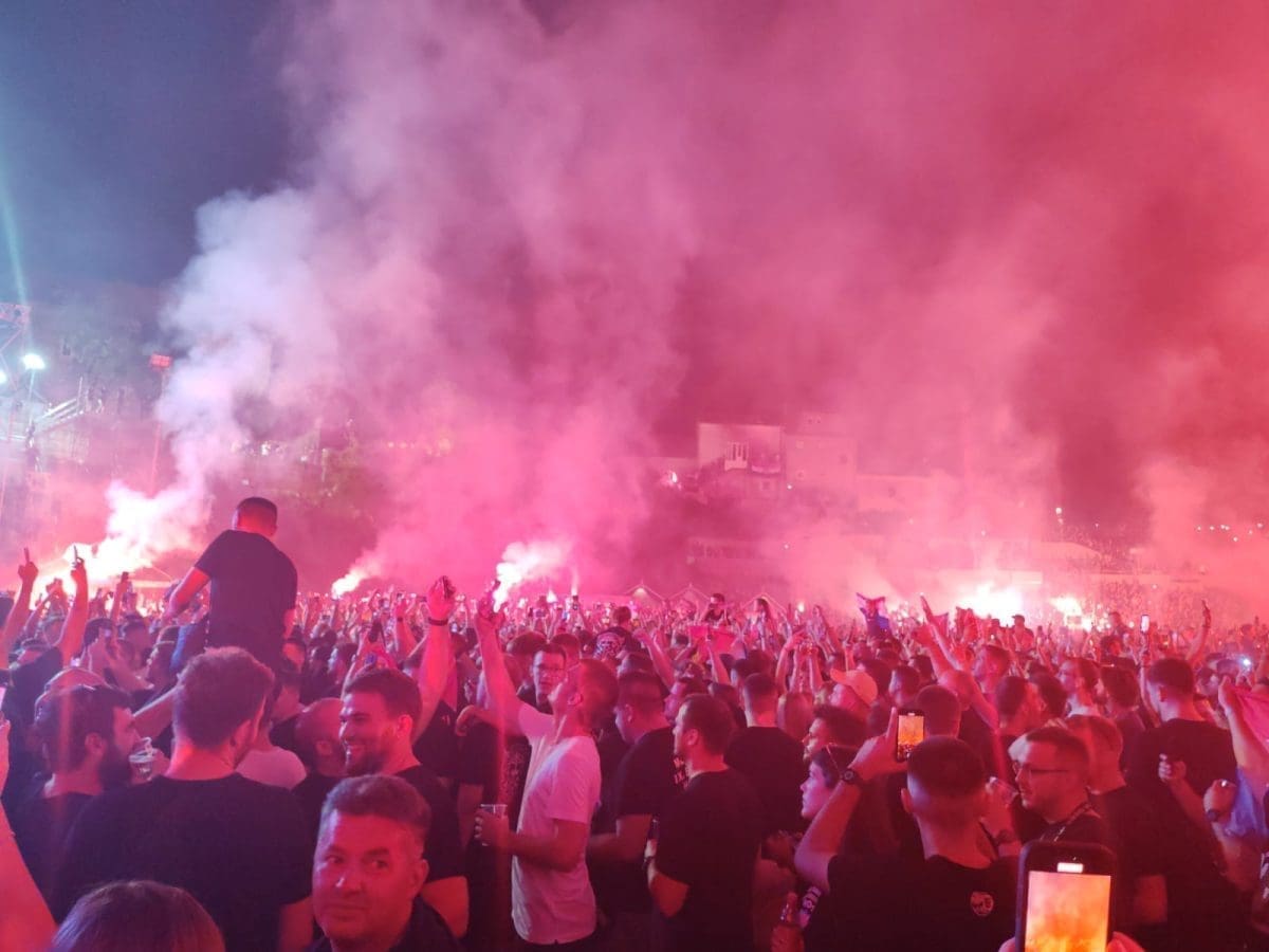 Posjetitelji su oduševljeni i nastao je pravi delirij kada su se ugasila svjetla na pozornici. Pale se baklje, pjeva se i vijore se zastave na prepunom stadionu u Imotskom.