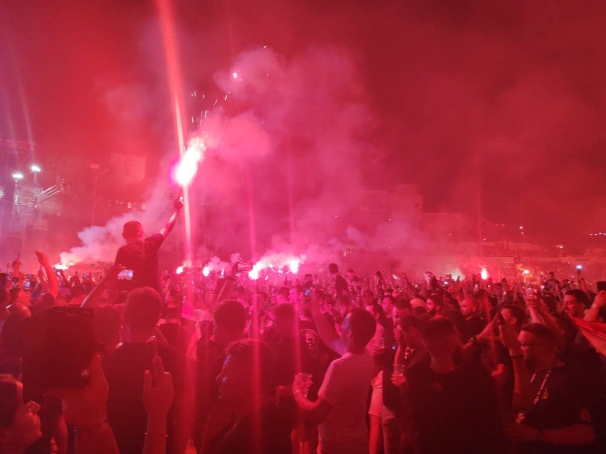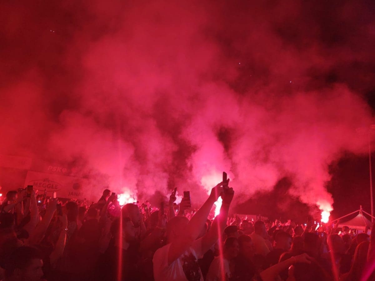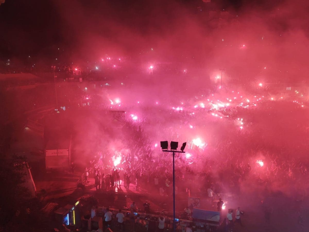 Upalile su se i prve baklje, vijore se zastave i atmosfera je fenomenalna.