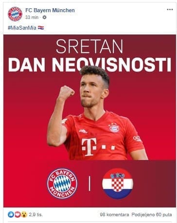 Hrvatska danas slavi Dan neovisnosti, a Bavarci nisu zaboravili uputiti čestitku. Fotografiju objave, u kojoj su izdvojili njihovog nogometaša Ivana Perišića, prilažemo uz tekst: