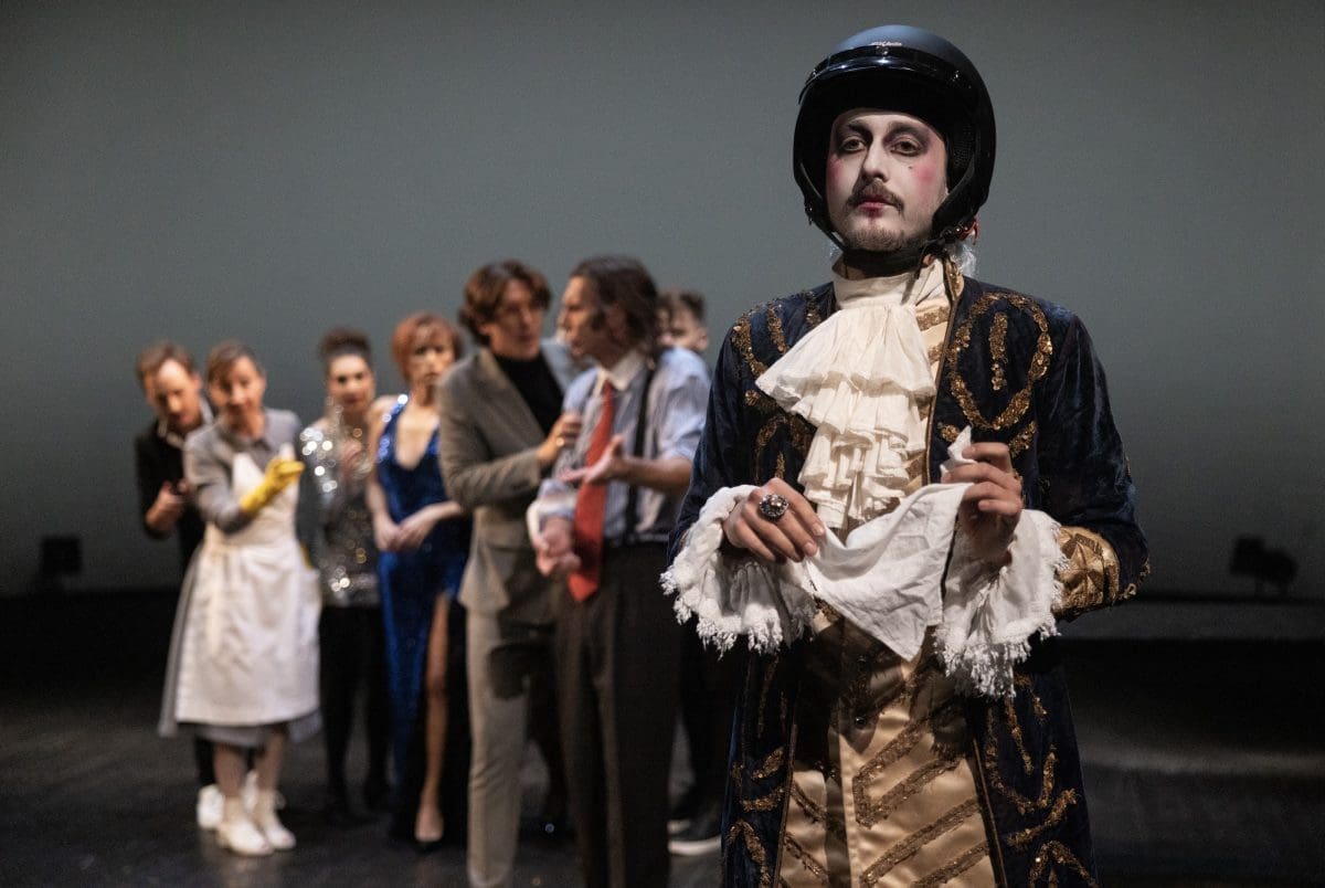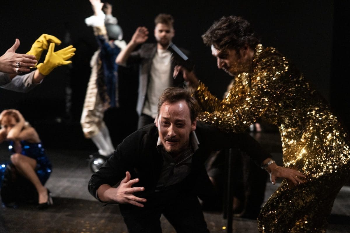 Dobro znana Molièreova komedija "Tartuffe" dolazi u režiji Ivana Plazibata kao "Tartuffe, Tartuffe, Tartuffe". Jean-Baptiste Poquelin, poznat po svom scenskom imenu Molière, u svojoj je komediji ismijao licemjerje, lažnu pobožnost i fanatizam svoga vremena, a Ivan Plazibat na temelju klasičnog predloška kritičku i satiričnu oštricu usmjerava prema estradiziranom suvremenom društvu. Svojoj inačici Molièreova klasika redatelj Plazibat pristupio je, po vlastitim riječima, kao jednoj velikoj obiteljskoj fresci, u kojoj je varalica Tartuffe samo katalizator koji razotkriva obiteljske odnose i društvo u kojem živimo. Tartuffe u predstavi, poput suvremenih propovjednika moralista, za vješto prikrivanje svoje lažne moralnosti koristi suvremene medije i tehnologiju. Bogati trgovac Orgon dovodi slatkorječivog licemjera i lažnog kršćanina u svoju kuću, prepisuje na njega svoju baštinu. Orgon na kraju uviđa zabludu a Tartuffe se pretvara u ono što jest, u hoštaplera i lažnog bogataša kojeg sustav razotkriva.