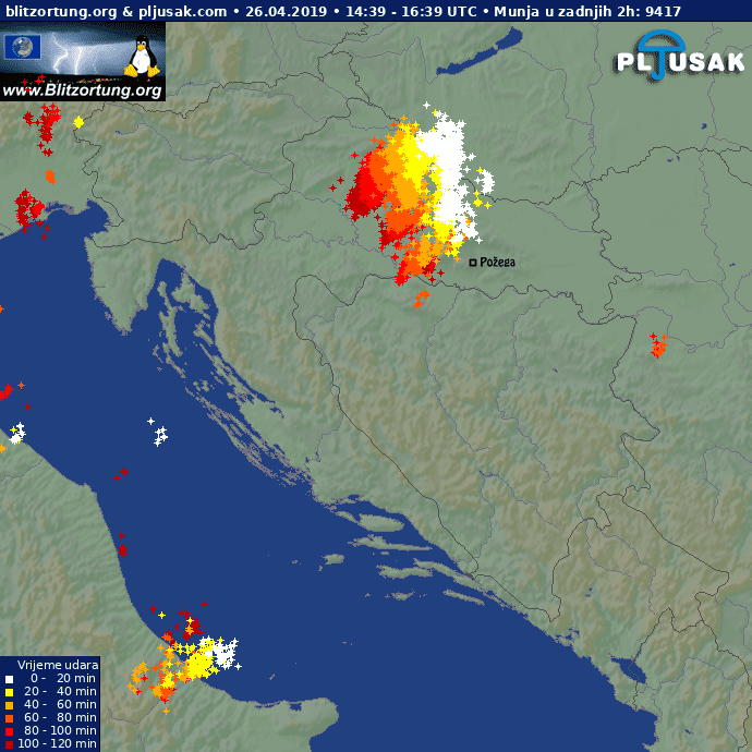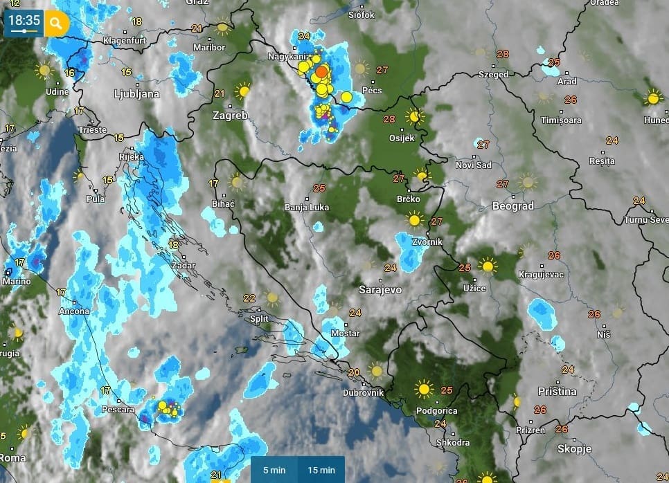 Zapadni dio zemlje već je zahvatila hladna fronta koja nam donosi promjenu sinoptičke situacije. Zbog nje je na sjevernom Jadranu i unutrašnjosti zemlje bilo kiše i pljuskova, a iza 16 sati dio Podravine zahvatilo je snažno grmljavinsko nevrijeme.