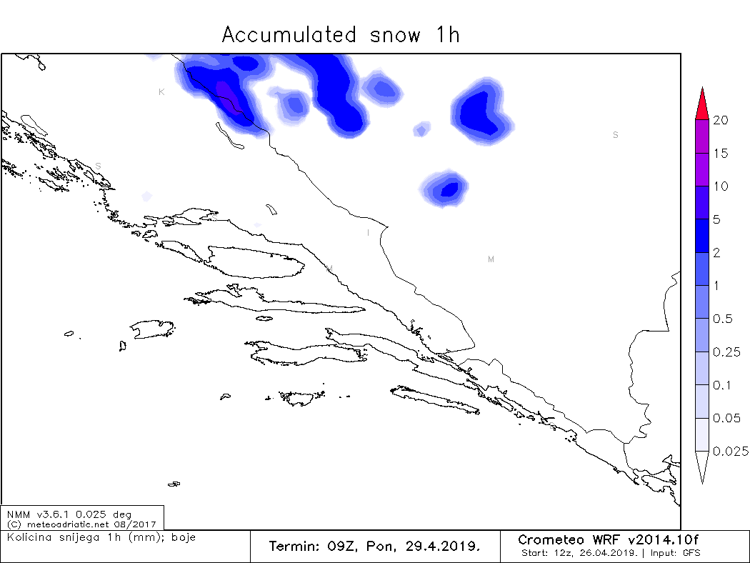 Petak je bio posljednji dan višednevnog niza dominacije juga na Jadranu. Južni vjetrovi zadnjih dana nisu donijeli puno kiše, ali jesu smanjenu vidljivost zbog povišene koncentracije pustinjskog pijeska i prašine u zraku i natprosječnu toplinu. Tako su jučer najviše dnevne temperature zraka u Zagori bile do vrlo toplih 27°C. Danas je živa u termometrima diljem Dalmacije u najtoplijem dijelu dana bila uglavnom od 22 do 26°C, a najtopliji dio Hrvatske bila je Slavonija gdje je danas ponegdje zabilježena prva ovogodišnja vrućina i čak 30 Celzijevih stupnjeva.