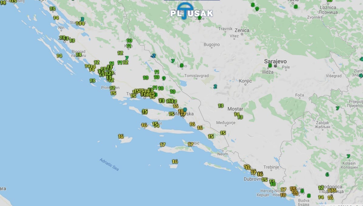 Olujni udara bure bilo je u Splitu (86k m/h), Makarskoj i Rijeci (72 km/h).