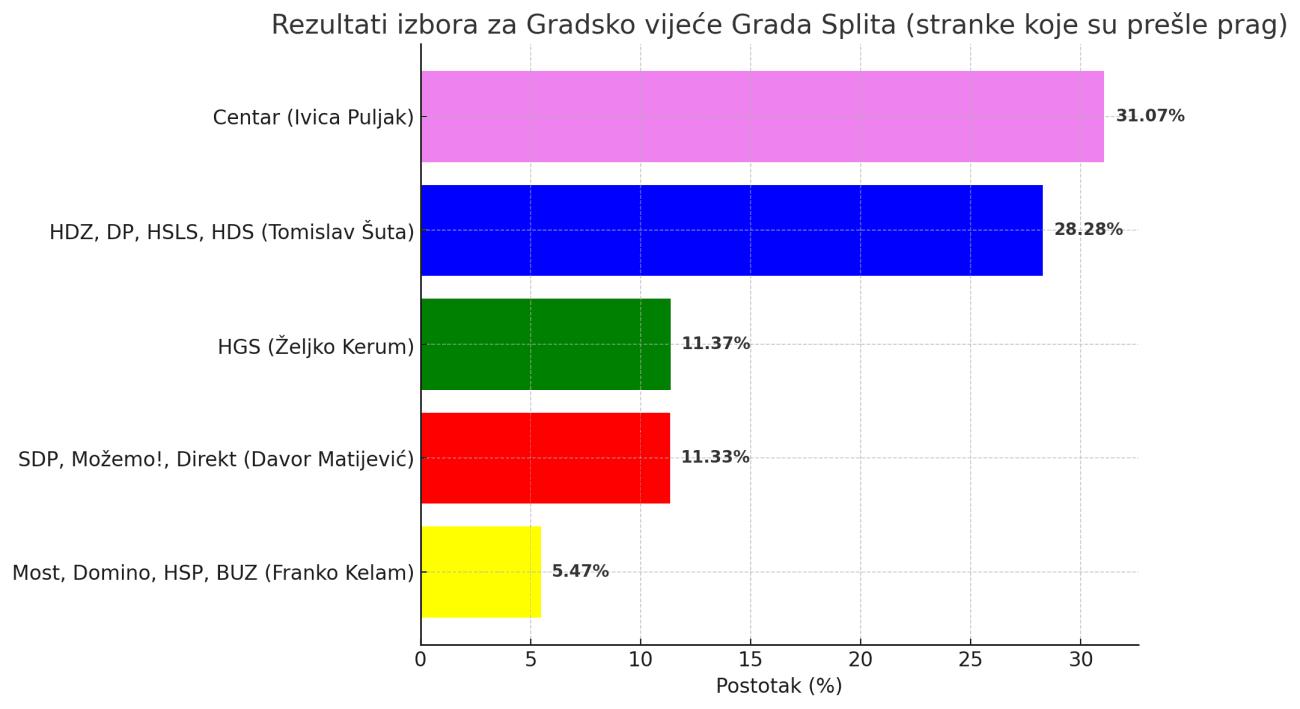 HGS (Željko Kerum) osvojio je 5.814 glasova ili 11,37 posto, što mu donosi 4 mandata.