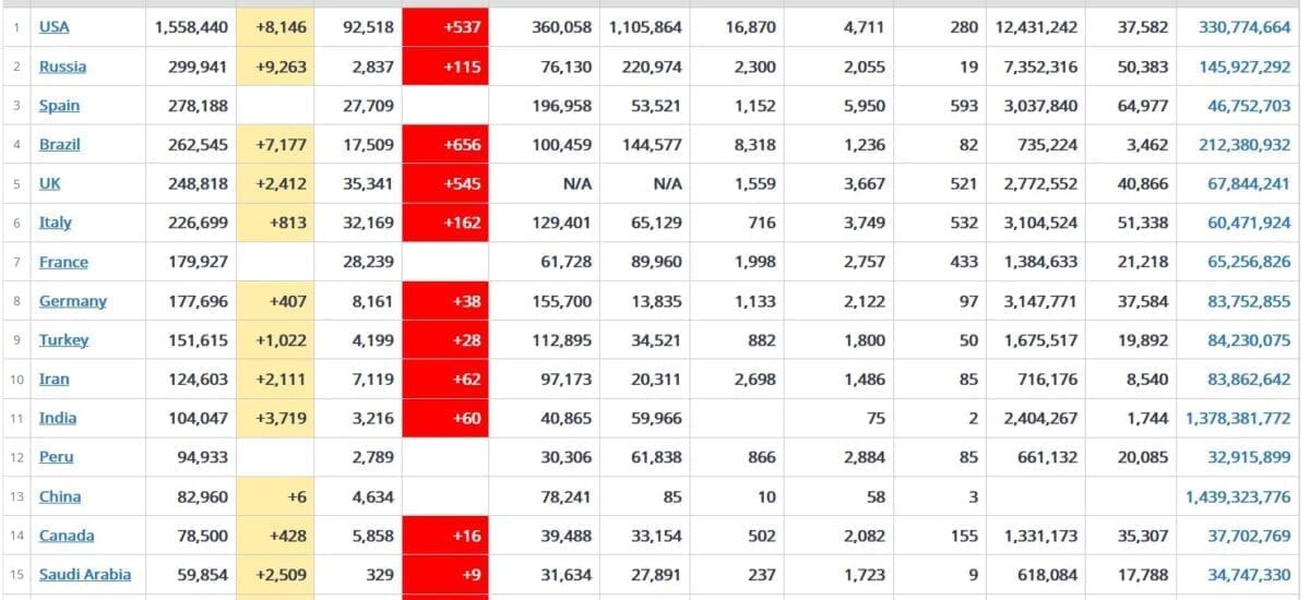 U Italiji je trenutno 65.129 aktivnih slučajeva, a od početka pandemije zaraženo je 226.699 ljudi. Danas ih je 716 kritičnom stanju. Italija je zabilježila 532 smrti na milijun stanovnika, što je čini trećom zemljom u Europi po smrtnosti.